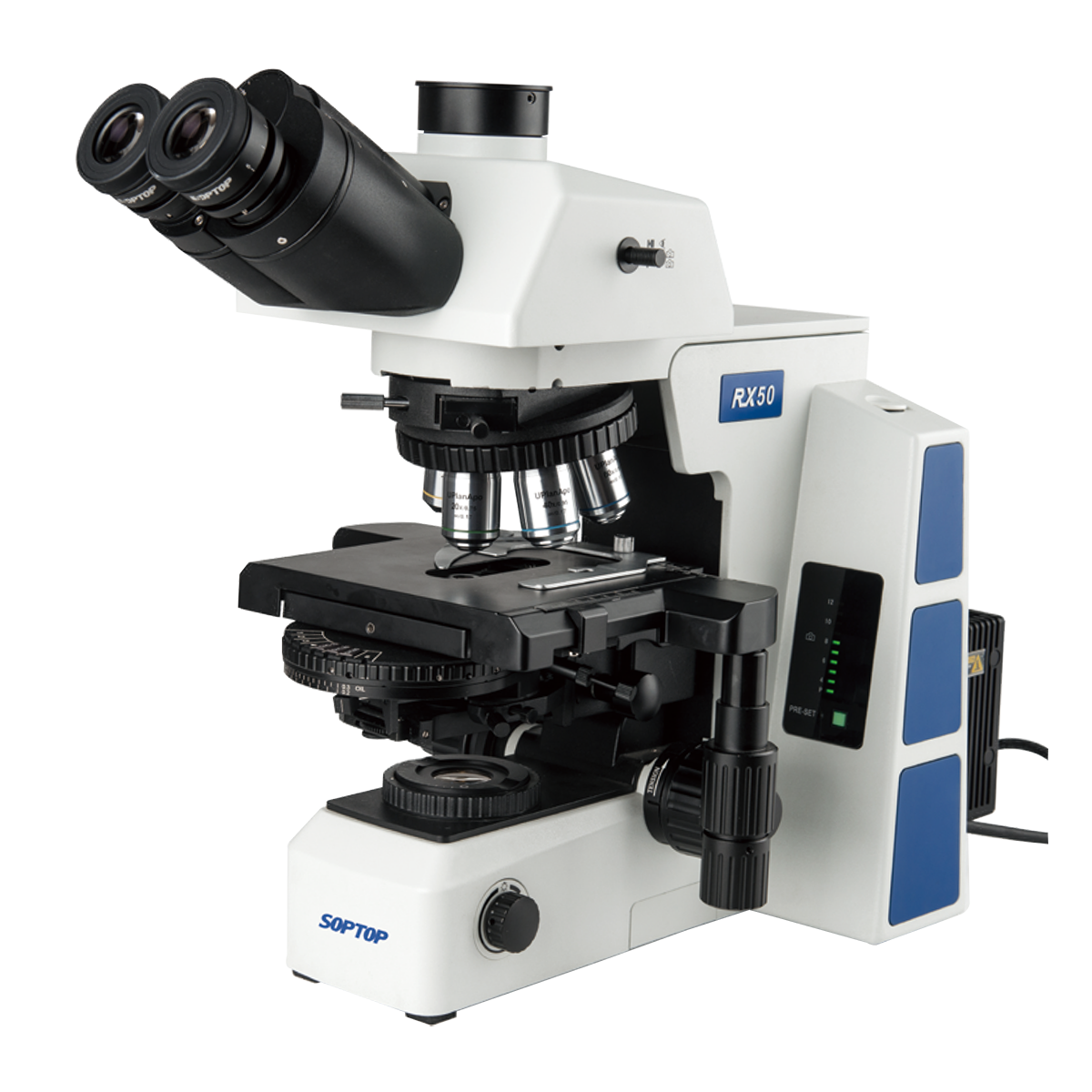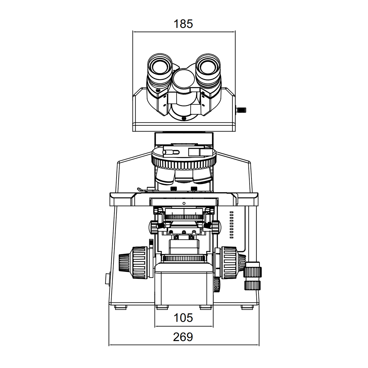 Infinite. Total Magnification: 40-1000X. 10X Adjustable Eyepiece. 4X 10X 20X 40X 100X Infinity Plan Achromatic Objective. Standard Coupler: 0.5X. Eye Tube Angle: 30°. Eyepiece Field of View: Dia. 23mm. XY Stage Travel Distance: 80x55mm. Illumination Type: LED Coaxial Transmitted Light. Input Voltage: AC 100-240V 50/60Hz.