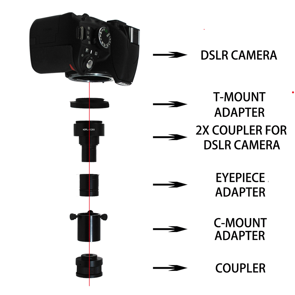 2X DSLR Digital Camera to Microscope Adapter Kit, C-Mount Coupler T-Mount Photomicroscopy Attachments