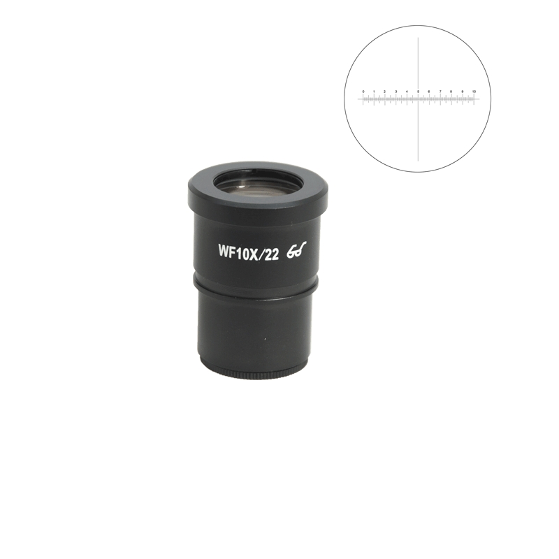 Reticle Eyepiece. Eyepiece Optical Magnification: 10X. Eyepiece Size for Eye Tube: Dia. 30mm. Eyepiece Field of View: Dia. 22mm. X-Axis Crosshair Scale. Reticle Dimensions: Dia. 24x1.5mm. 10mm/100 Div .