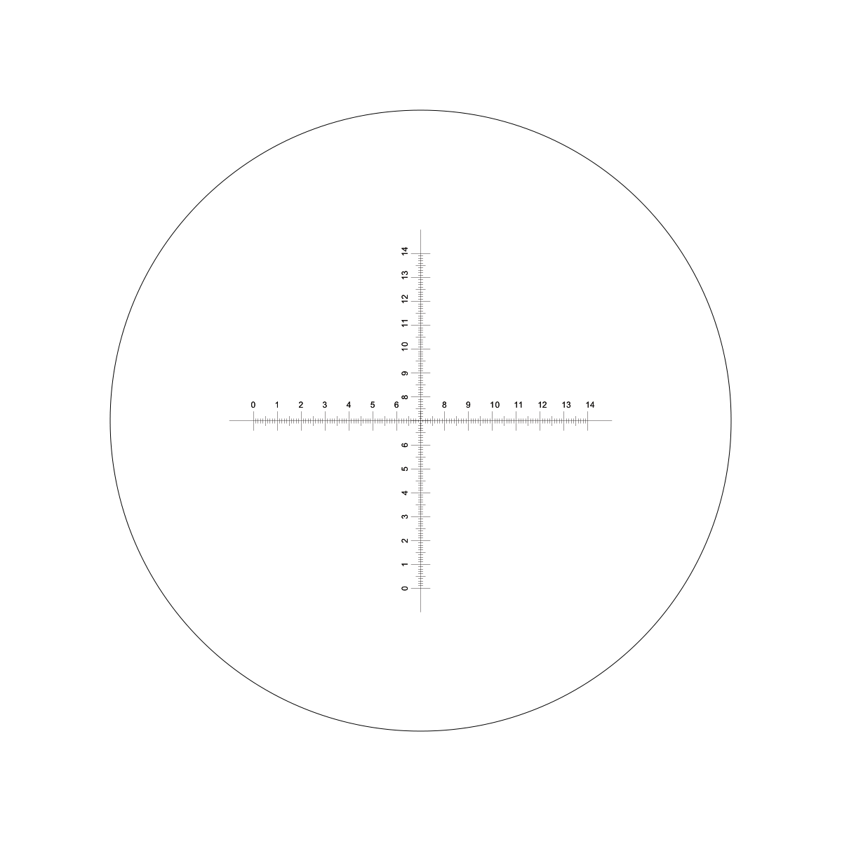 Crosshair Scale. Reticle Dimensions: Dia. 26x1.5mm. 14mm/140 Div. Optical Lens Diopter: 10X.