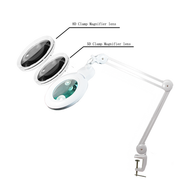 3, 5 & 8 Diopter LED Magnifying Lamp with Clamp – 3 Interchangeable 5-inch Glass Lenses