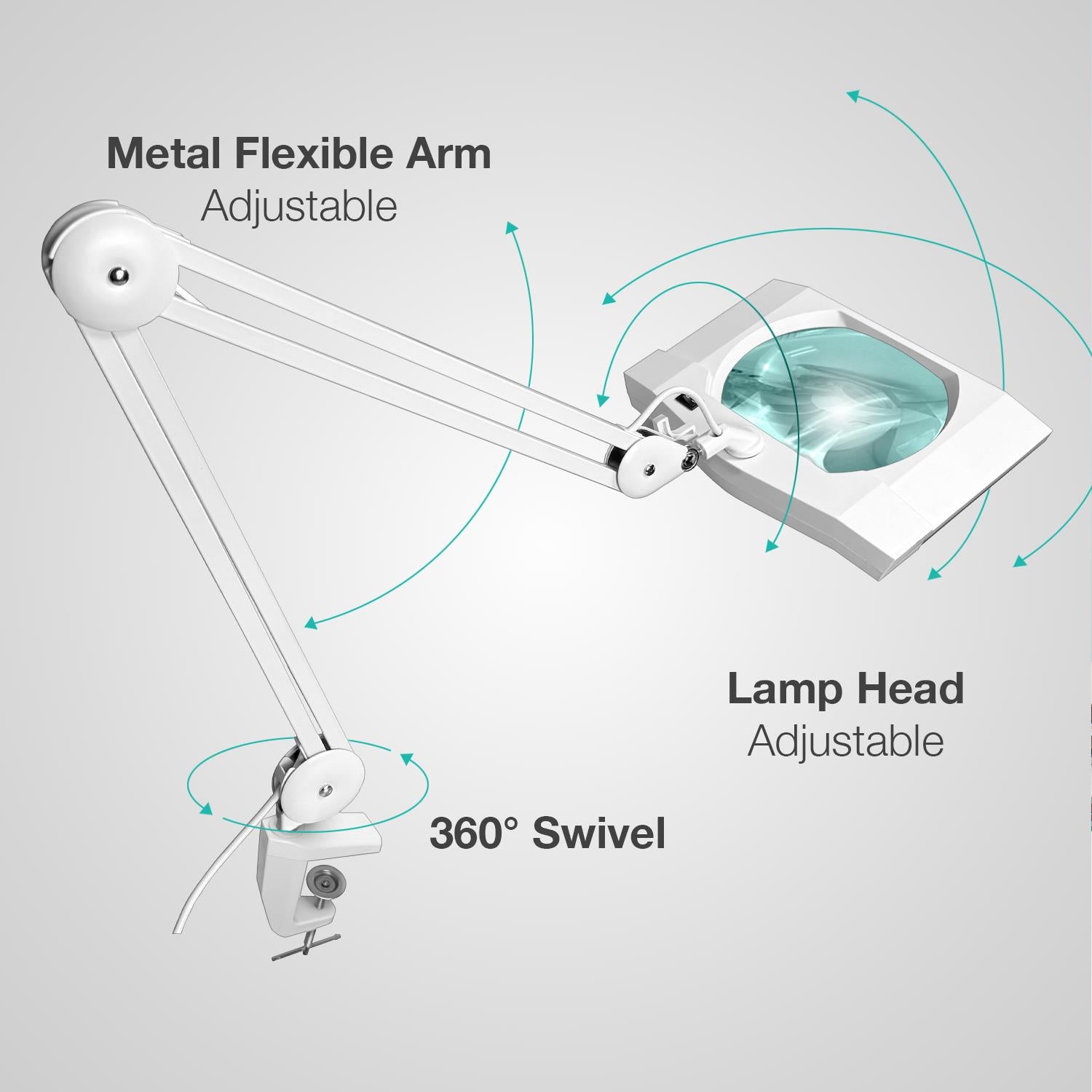 3 Diopter (1.75X) LED Magnifying Lamp with Clamp - Rectangle Head