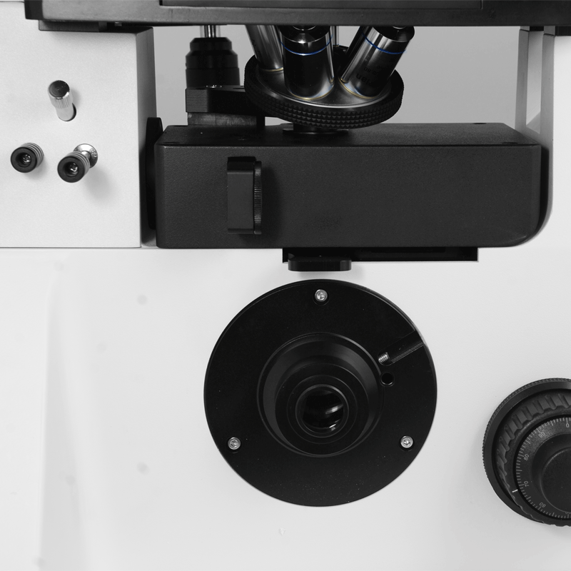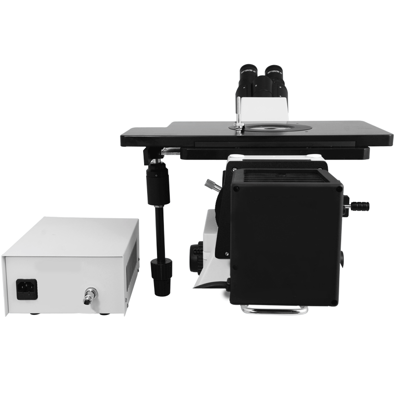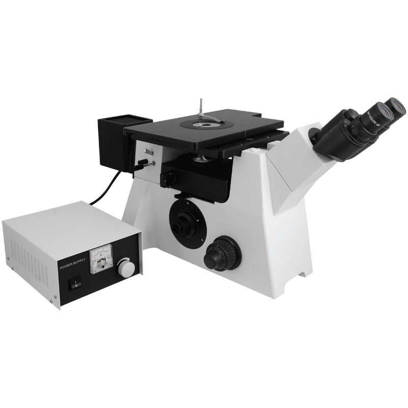 Infinite. Total Magnification: 100-800X. 10X High Eyepoint Eyepiece. 10X 20X 50X 80X Infinity Plan Achromatic Metallurgical Objective. Standard Coupler: 0.5X. Inverted. Eye Tube Angle: 45°. Eyepiece Field of View: Dia. 20mm. XY Stage Travel Distance: 120x90mm. Illumination Type: Halogen Coaxial Reflection Light. Coaxial Reflection Light Type: Bright Field. Number of Filter Kit: 4. Input Voltage: AC 100-240V 50/60Hz.