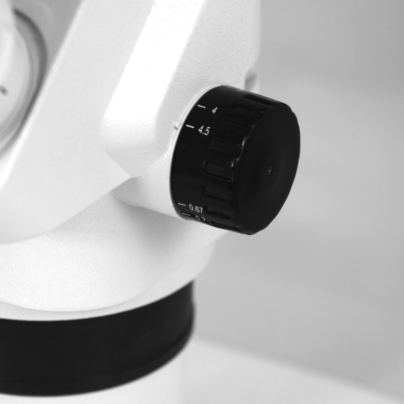 Finite. Body Magnification: 6.7-45X. Zoom Range: 0.67-4.5X. Zoom Ratio: 1:6.7. Trinocular. Body Mounting Size for Stand: Dia. 76mm. Eye Tube Angle: 45°. Eye Tube Inner Diameter: Dia. 30mm. Eye Tube Diopter Adjustable: ±5°. 0/100 Switch Trinocular. Standard Eyepiece. Eyepiece Optical Magnification: 10X. Eyepiece Size for Eye Tube: Dia. 30mm. Eyepiece Field of View: Dia. 22mm. Eye Guard Mount Size: Dia. 36mm. Built-in Objective Magnification: 1X. Objective Working Distance: 100mm.