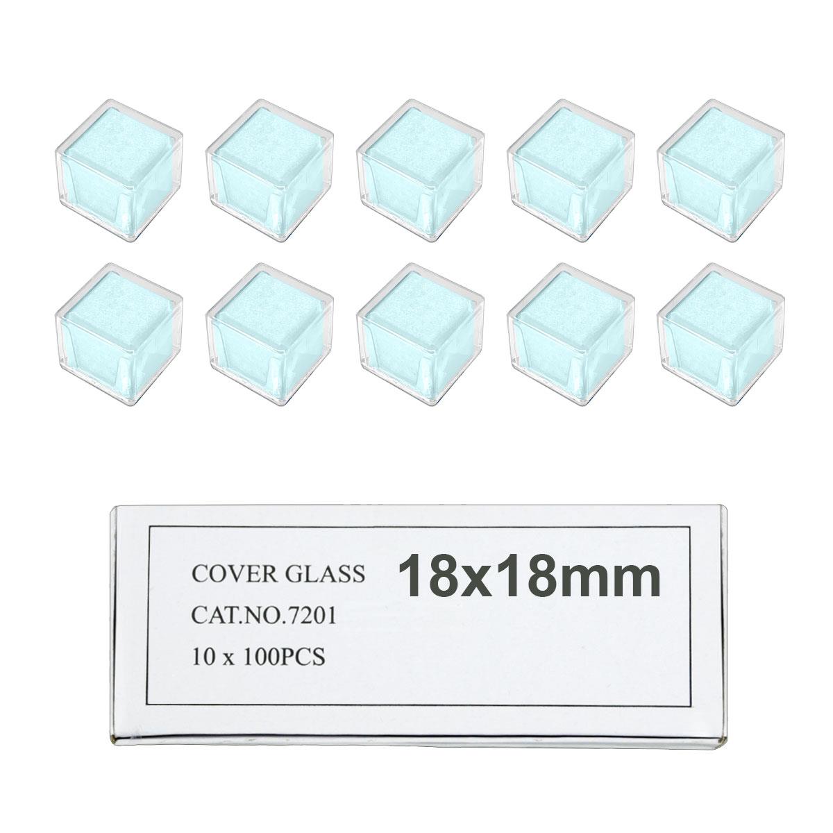 Cover Slip Shape: Square. Cover Slip Dimensions: 18x18mm. Cover Slip Thickness: 0.19mm-0.22mm. Cover Slip Quantity per Pack: 1000pc.