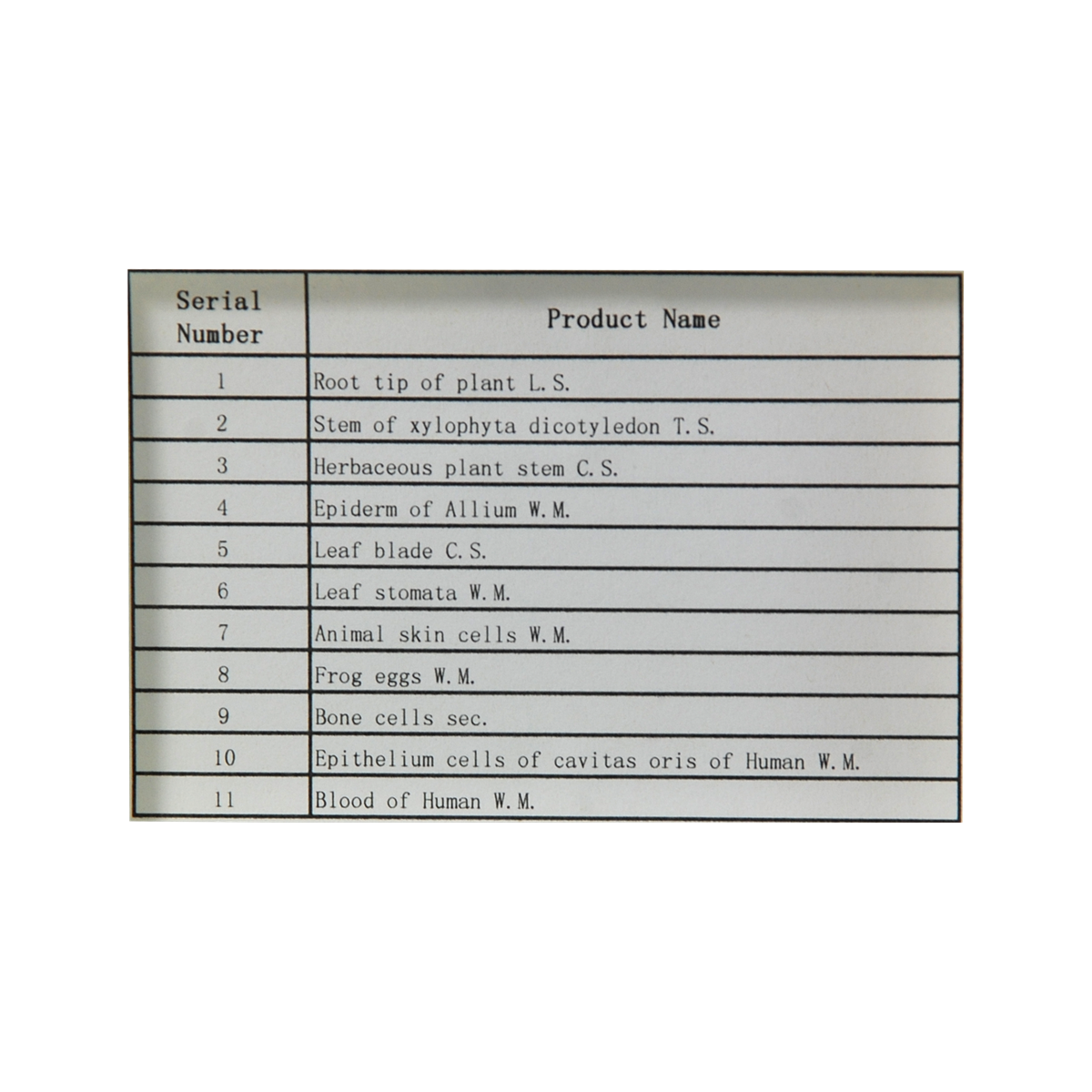 Specimen are secured in place and protected with a glass cover slip. Brand new slides are passed through quality control inspections for clean, scratch-free and uncontaminated slides.Slides are organized in numerical order. The indexed guide makes it easy to return slides in their places. The plastic box provides easy storage.