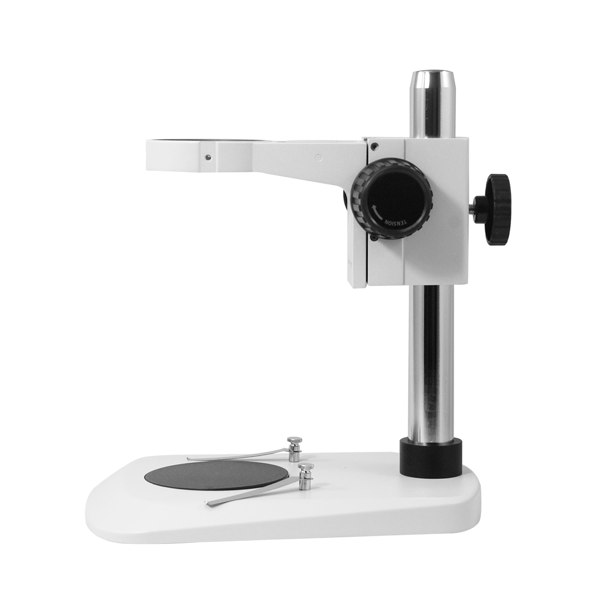 Post Stand. Dia. 76mm Scope Holder. Vertical Post Height: 280mm. Vertical Post Diameter: Dia. 32mm. Base Dimensions: 205x275x25mm. Focus Distance: 50mm . Black White Plate. Plate Size: Dia. 100x6mm.