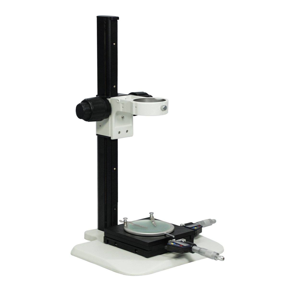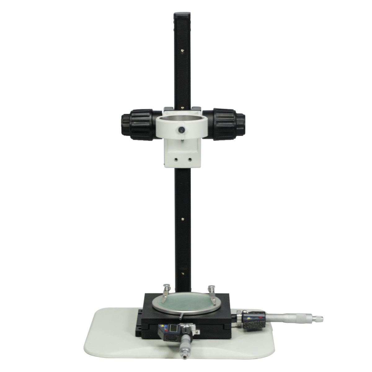Track Stand. Dia. 76mm Scope Holder. Track Length: 520mm. Base Dimensions: 320x305x16mm. Focus Distance: 385mm. Black White Plate. Plate Size: Dia. 95x5mm. XY Stage Travel Distance: 2x2 in. XY-Axis Drive Mode: Manual. Stage Platform Dimensions: 150x150mm. XY-Axis Measurement Mode: Micrometer. XY-Axis Resolution: 1μm.