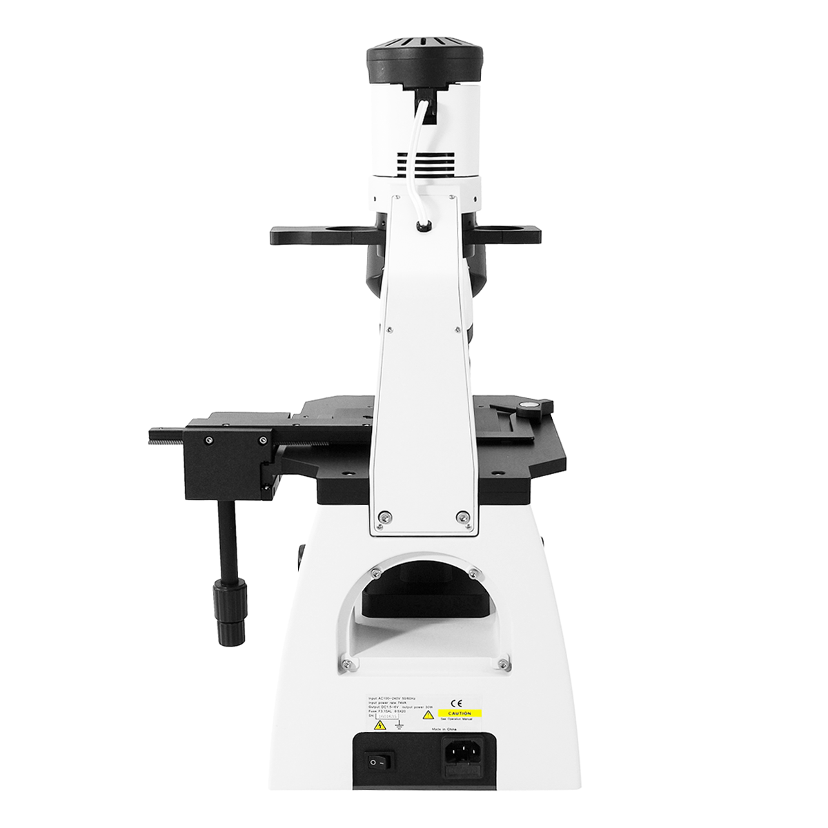 Infinite. Total Magnification: 100-400X. 10X High Eyepoint Eyepiece. 10X 20X 40X Infinity Plan Achromatic Objective; 20X Infinity Plan Achromatic Positive Phase Contrast Objective. Inverted. Eye Tube Angle: 30°. Eyepiece Field of View: Dia. 20mm. Phase Contrast Objective: Positive . XY Stage Travel Distance: 80x50mm. Illumination Type: Halogen Transmitted Light. Input Voltage: AC 110-240V 50/60Hz.