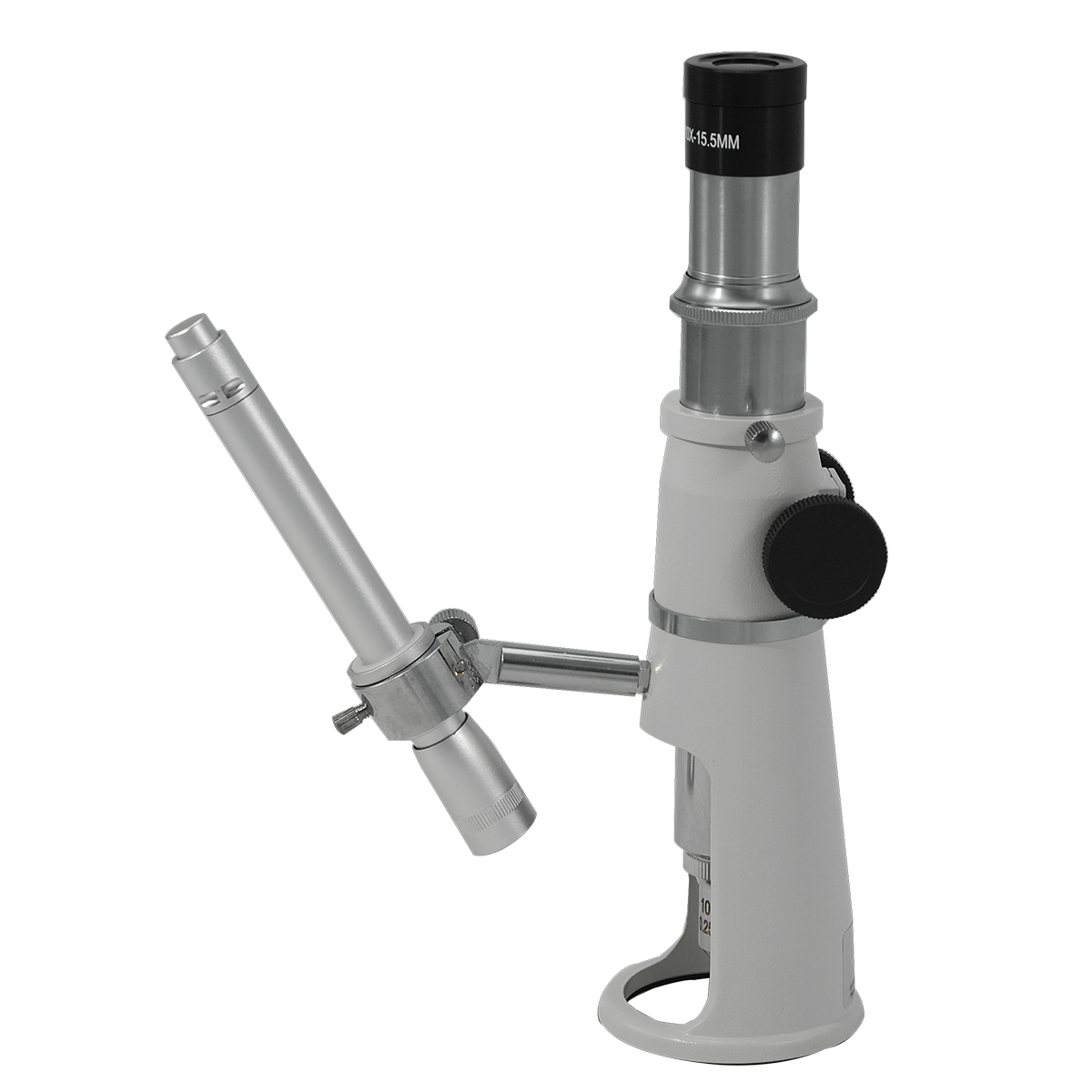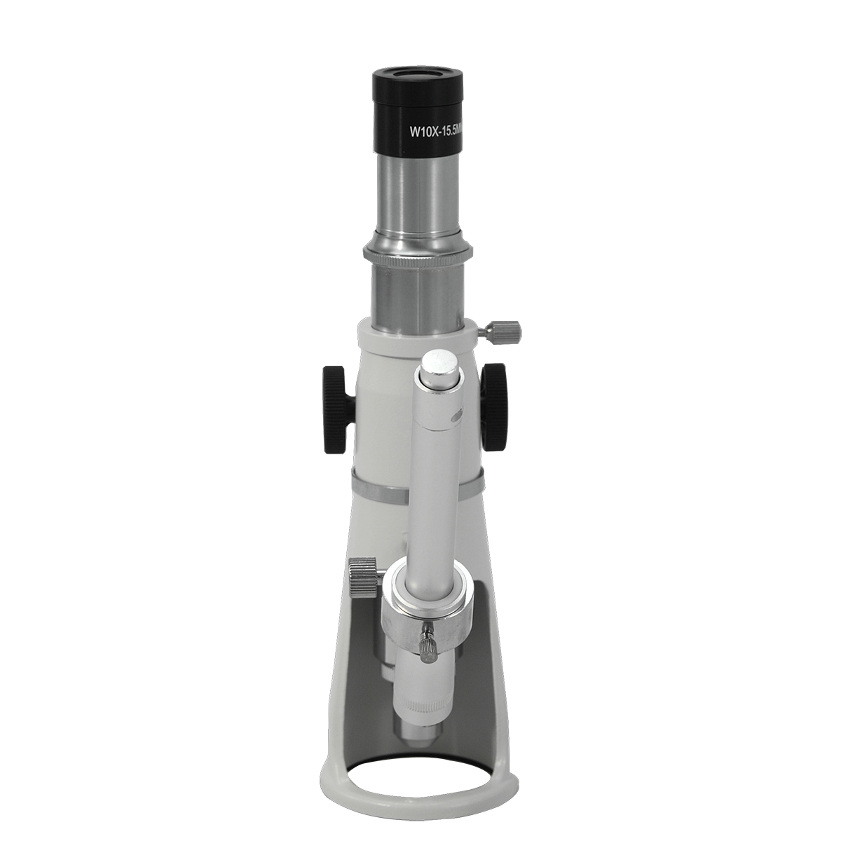 Reticle eyepiece. The eyepiece focal length (10mm below the eyepiece mounting surface eyepiece shoulder) of the reticle eyepiece is equipped with a reticle for measuring and positioning the object to be observed. For one microscope, a reticle can be installed only on one eyepiece, and it requires that the two eyepieces should be completely identical. If two are installed, it is generally very difficult to make the two reticles of both the left and the right eyepiece completely overlap, which may cause eye discomfort. The reticle eyepieces are generally used on 10X and 20X eyepieces. The mounting dimension of the reticle refers to the size of the inner diameter of the lower end tube of the eyepiece. It requires that the eyepiece that can be equipped with a reticle needs a preset thread and a pressing ring. The reticle is facing up (in the direction of the eyepiece lens), placed flat on the reticle mounting surface of the eyepiece, and screwed in with a pressure ring, and press tight. Ordinary users can also install the reticle on their own as needed. The reticle is generally made of glass material, and the etched printed surface is the front side. It is mounted on the end close to the eye, which is the position of the eyepiece image plane; when avoiding the use of different reticle, the focal length is different due to the different thickness of the glass, which makes the scribe line of the reticle fall on the unclear image plane position. The reticle is placed under the eyepiece. When measuring the object, the reticle and the object to be measured are also magnified by the eyepiece, so the actual length of the reading has no relation at all with the magnification of the eyepiece. When the reticle reads the length value in the eyepiece of the microscope, because the length of the image to be measured passes through the objective lens and reaches the image plane position of the reticle, the length read is actually the length magnified by the objective lens. The real numerical value should be the length of the reading, divided by the numerical value of magnification of the objective lens. If it is the zoom microscope body with also magnification, it should also be divided by the magnification (objective lens X zoom). In this measurement method, the error mainly lies in that the magnification of the objective lens is not calibrated, and the magnification error of ordinary microscope objective lens can reach +-5%. Therefore, for accurate measurement, it should be used after calibration with the objective micrometer. For the calibration method, please refer to the introduction of “Reticle”. |