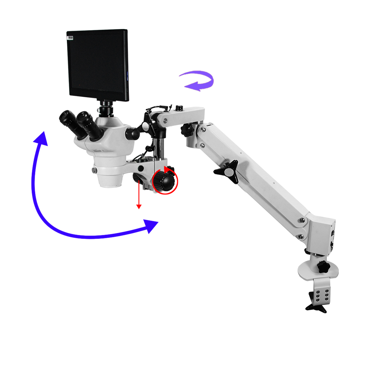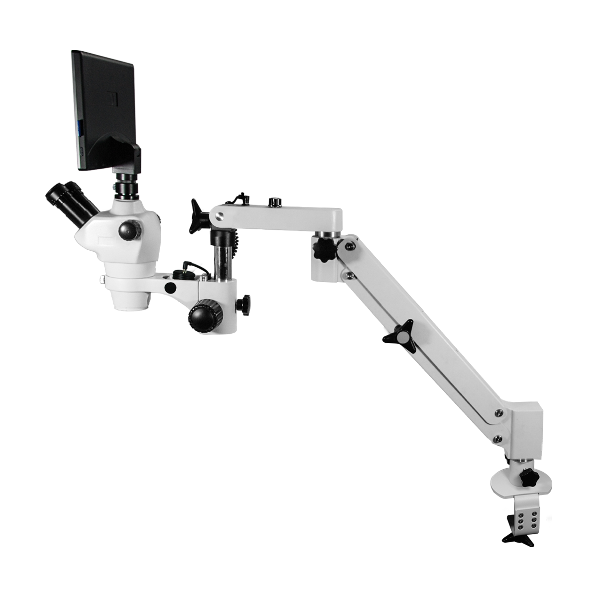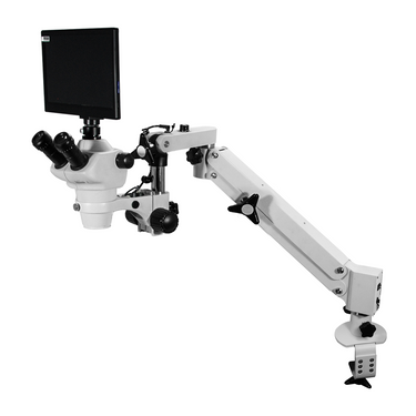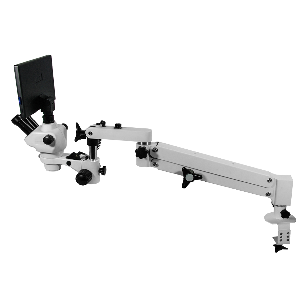 Finite. Total Magnification: 4-50X. 10X Adjustable Eyepiece. 0.5X Objective. Standard Coupler: 0.4X. Zoom Ratio: 1:6.3. Trinocular. Body Mounting Size for Stand: Dia. 76mm. Magnification Detent : 1X per pre-set stop. Eye Tube Angle: 45°. Eyepiece Field of View: Dia. 22mm. Pneumatic Arm. Total Arm Length: 940mm. Top Illumination: Oblique Top Light. CMOS. 2.0 Megapixels. Windows XP/7/8/10/11. Screen Size: 11.6in. Input Voltage: DC 12V.