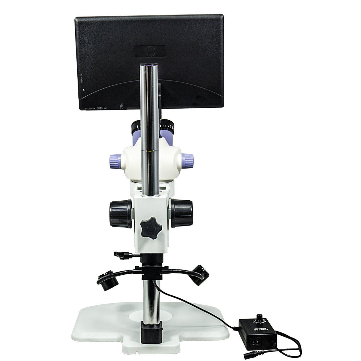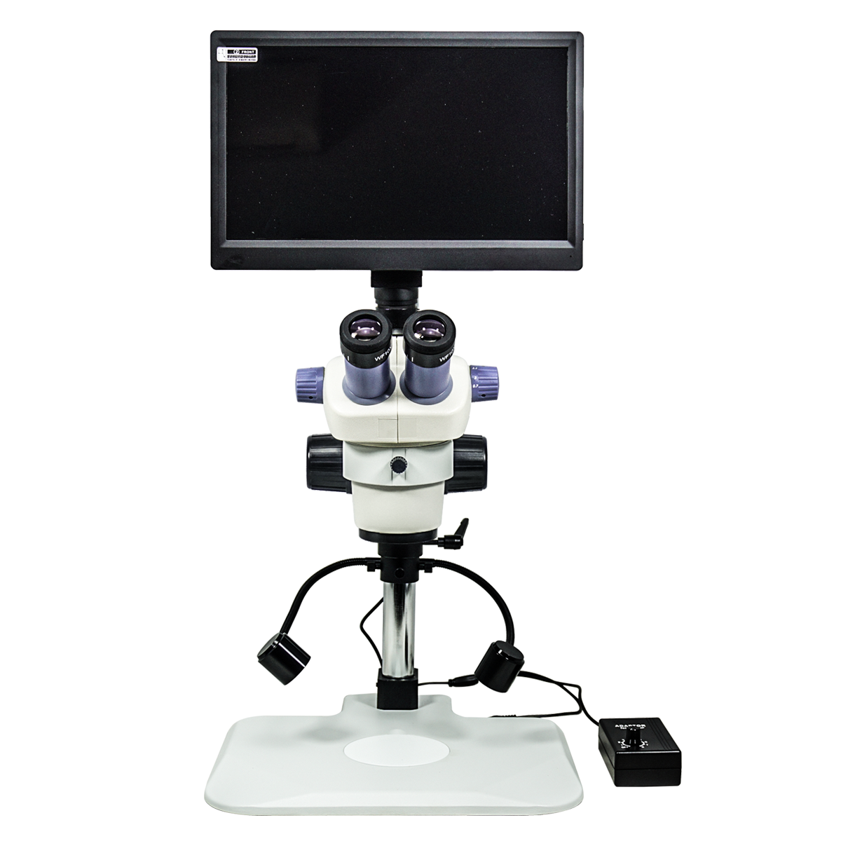 Finite. Total Magnification: 7-30X. 10X Adjustable Eyepiece. 1X Built-in Objective. Standard Coupler: 0.4X. Zoom Ratio: 1:4.3. Trinocular. Body Mounting Size for Stand: Dia. 76mm. Eye Tube Angle: 45°. Eyepiece Field of View: Dia. 20mm. Post Stand. LED Light. Light Adjustable. CMOS. 2.0 Megapixels. Windows XP/7/8/10/11. Screen Size: 11.6in. Input Voltage: AC 100-240V 50/60Hz. Input Voltage: DC 12V.