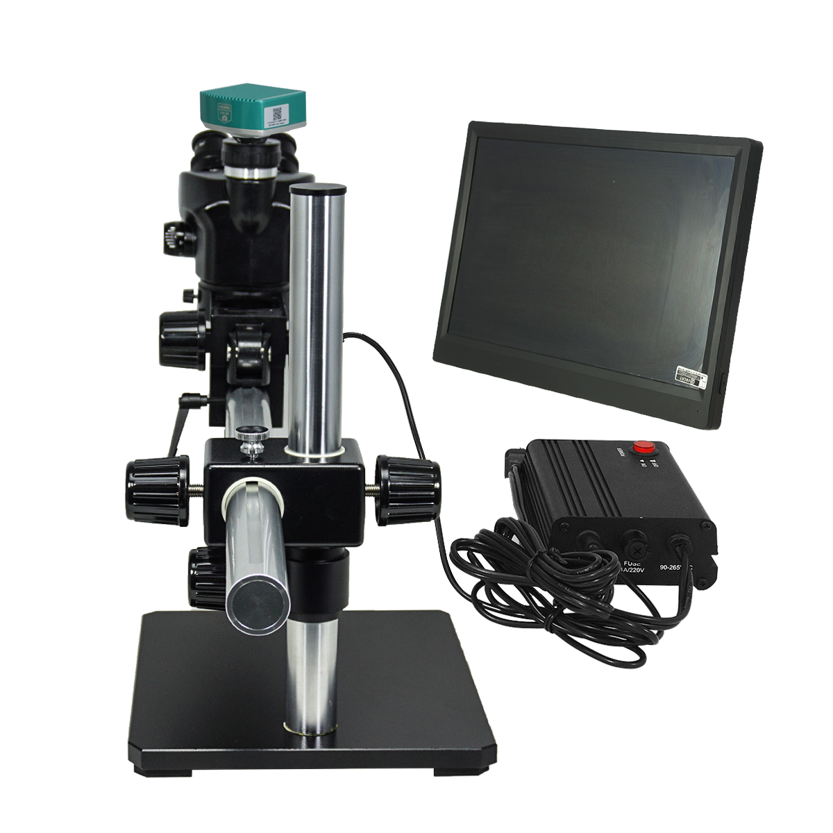Finite. Total Magnification: 7-50X. 10X High Eyepoint Eyepiece. 1X Built-in Objective. Standard Coupler: 0.5X. Zoom Ratio: 1:7.1. Trinocular. Body Mounting Size for Stand: Dia. 76mm. Eye Tube Angle: 45°. Eyepiece Field of View: Dia. 20mm. Boom Stand. LED Light. Light Adjustable. CMOS. 2.0 Megapixels. HDMI / USB 2.0. Windows XP/7/8/10/11. Screen Size: 11.6in. Input Voltage: AC 100-240V 50/60Hz. Input Voltage: AC 90-265V 50/60Hz. Input Voltage: DC 12V. ESD Safe.