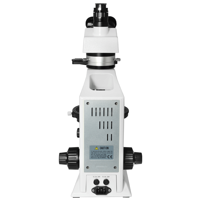 Finite. Total Magnification: 40-400X. 10X Eyepiece;10X Reticle Eyepiece. 4X 10X 40X Plan Achromatic Polarizing Objective. Standard Coupler: 0.5X. Eye Tube Angle: 30°. Eyepiece Field of View: Dia. 18mm. Illumination Type: LED Coaxial Transmitted Light. Input Voltage: AC 90-240V 50/60Hz.