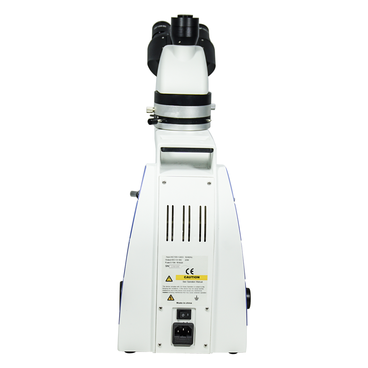 Infinite. Total Magnification: 40-600X. 10X Eyepiece. 4X 10X 40X 60X Infinity Plan Achromatic Polarizing Objective. Standard Coupler: 0.5X. Eye Tube Angle: 30°. Eyepiece Field of View: Dia. 20mm. Illumination Type: Halogen Transmitted Light. Input Voltage: AC 100-240V 50/60Hz.