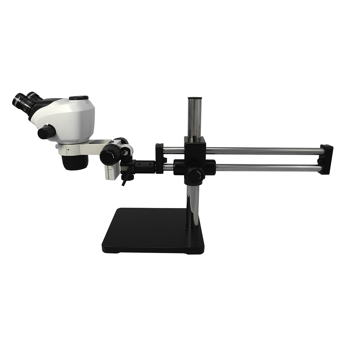 6.6X-51X WF Binocular Zoom Stereo Microscope + Boom Cross Dual Arm Stand
