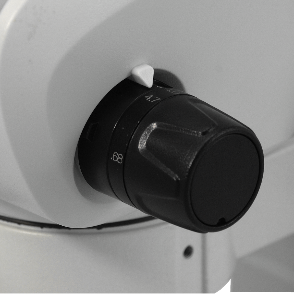 Finite. Total Magnification: 6.5-53X. 10X Adjustable Eyepiece. 1X Built-in Objective. Zoom Ratio: 1:8.1. Binocular. Body Mounting Size for Stand: Dia. 76mm. Magnification Detent : 0.5X per pre-set stop. Eye Tube Angle: 35°. Eyepiece Field of View: Dia. 24mm. Track Stand.
