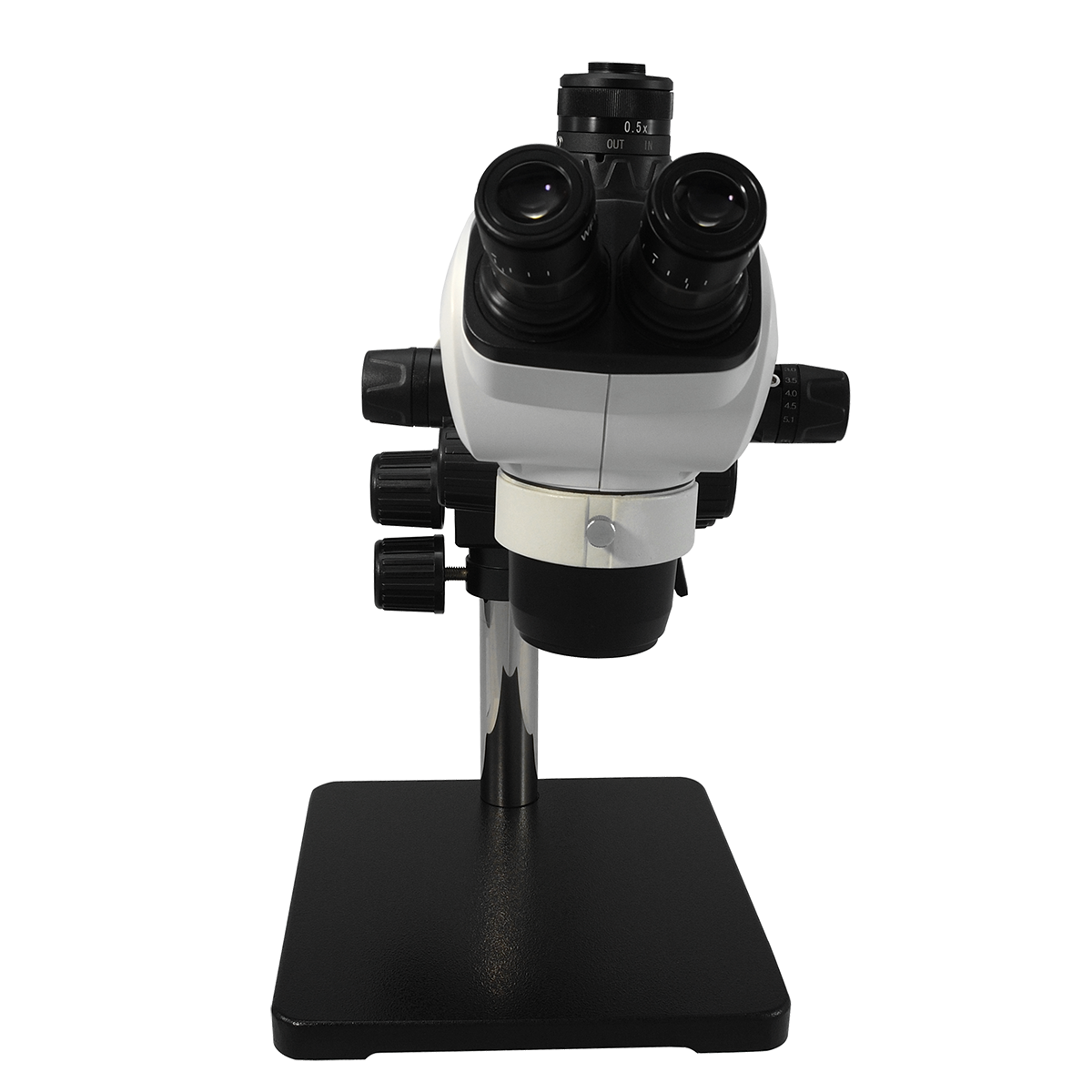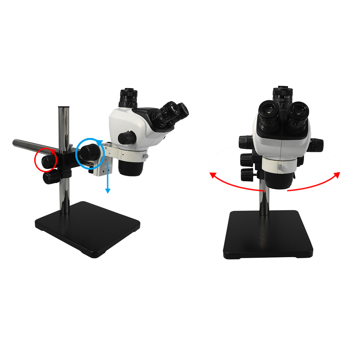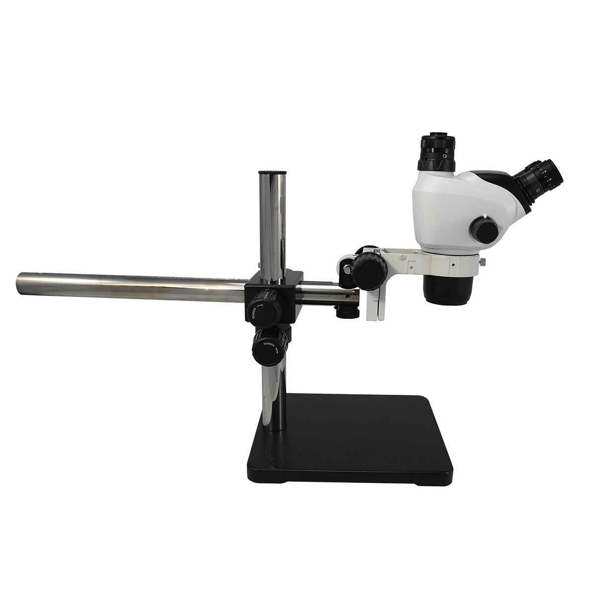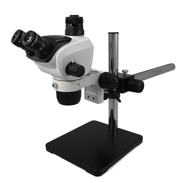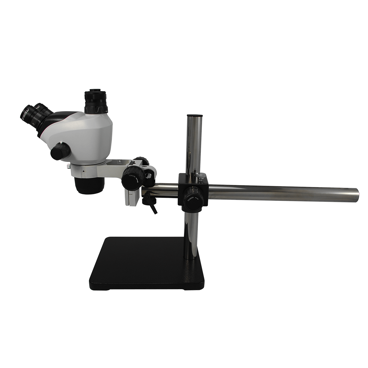 6.6X-51X Widefield Zoom Stereo Microscope, Trinocular, Single Arm Boom Stand