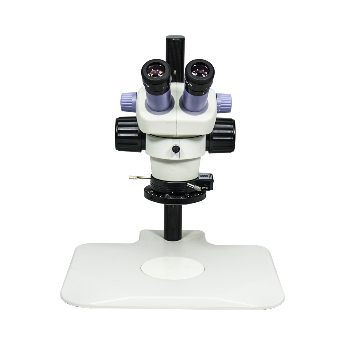 Finite. Total Magnification: 7-30X. 10X Adjustable Eyepiece. 1X Built-in Objective. Zoom Ratio: 1:4.3. Binocular. Body Mounting Size for Stand: Dia. 76mm. Eye Tube Angle: 45°. Eyepiece Field of View: Dia. 20mm. Track Stand. Polarizing LED Light. Light Adjustable. Input Voltage: AC 100-240V 50/60Hz.