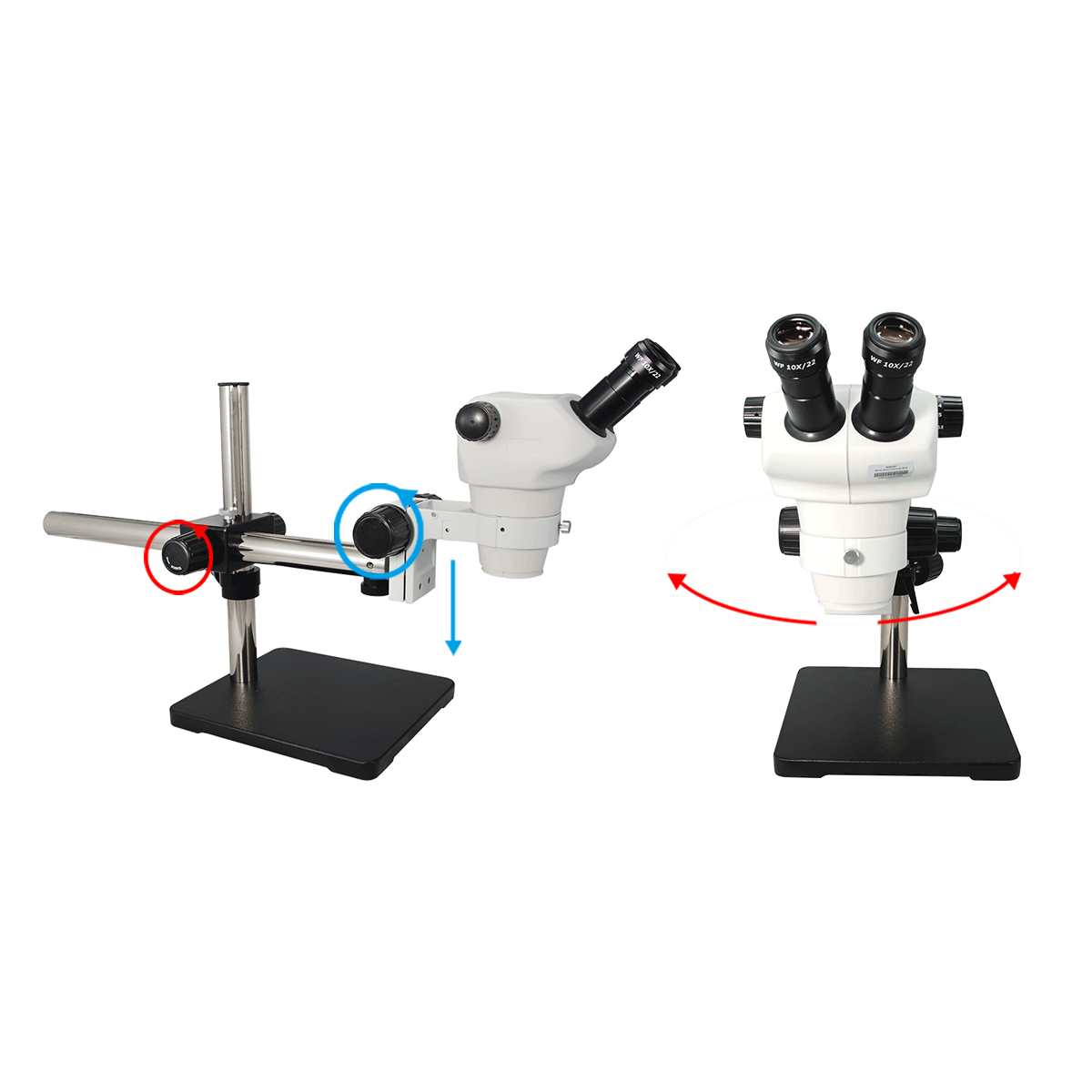 8X-50X Widefield Zoom Stereo Microscope, Binocular, Single Arm Boom Stand