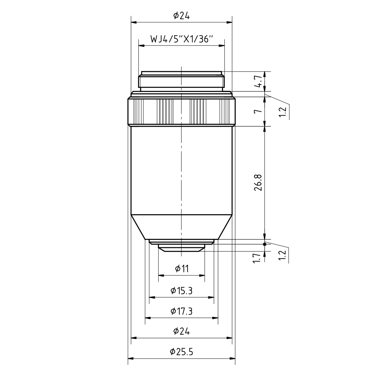 | Objective Screw Thread | RMS Standard (4/5 in. x1/36 in. ) |