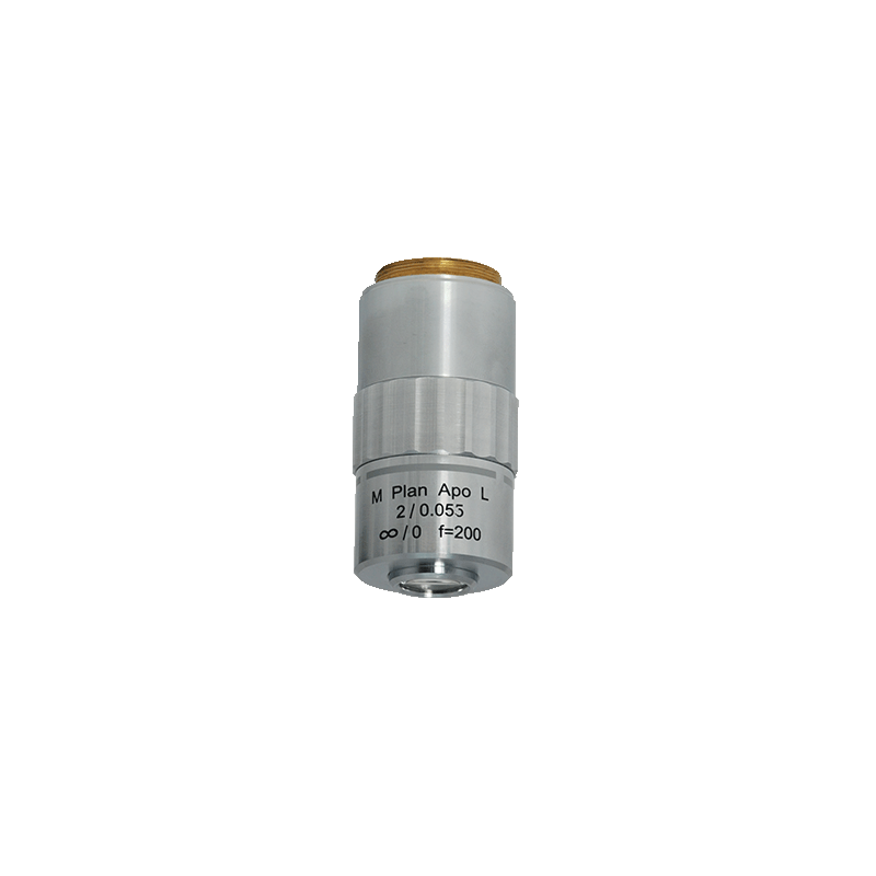 2X Infinity-Corrected Long Working Distance (M Plan Apo L) Apochromatic Metallurgical Microscope Objective Lens Working Distance 34.6mm, Polished Chrome