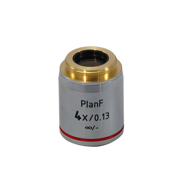 Infinite. 4X. Plan Achromatic Objective. Objective Parfocal Distance: 45mm. Objective for Focal Length: 180mm. Objective Working Distance: 16.3mm. N.A. 0.13.