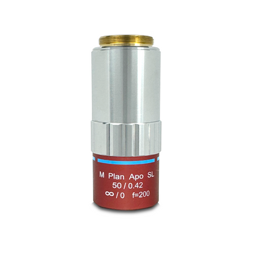 Infinite. 50X. Plan Apochromatic Objective. Objective Parfocal Distance: 95mm. Objective for Focal Length: 200mm. Objective Working Distance: 20.5mm. N.A. 0.42. Objective Wavelength: 400-1800nm. NIR Transmittance: 770-790nm 80% or more. Diameter of Image Focal Plane: Dia. 24mm. For LM1801 Series Microscope, Mitutoyo FS70 Microscope.
