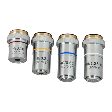 Finite. 4X. 10X. 40X. 100X. Achromatic Objective. Objective for Mechanical Tube Length: 160mm.
