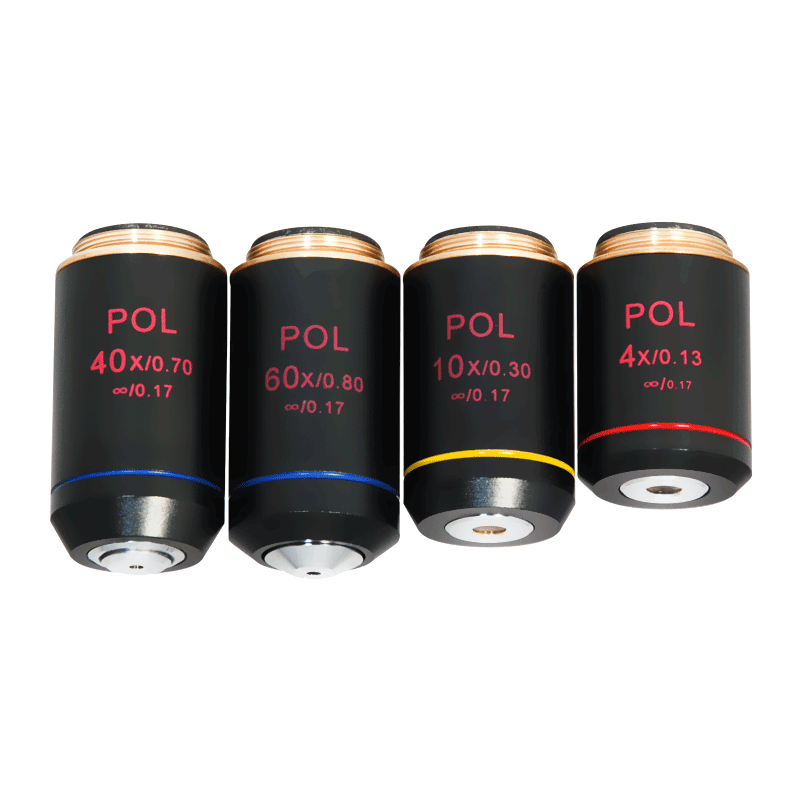 Infinity-Corrected Achromatic POL Polarizing Microscope Objective Lens Set 4X 10X 40X 100X with Black Finish