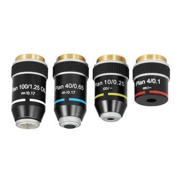 Infinity-Corrected Plan Achromatic Microscope Objective Lens Set (Oil Spring) 4X 10X 40X 100X with Black Finish