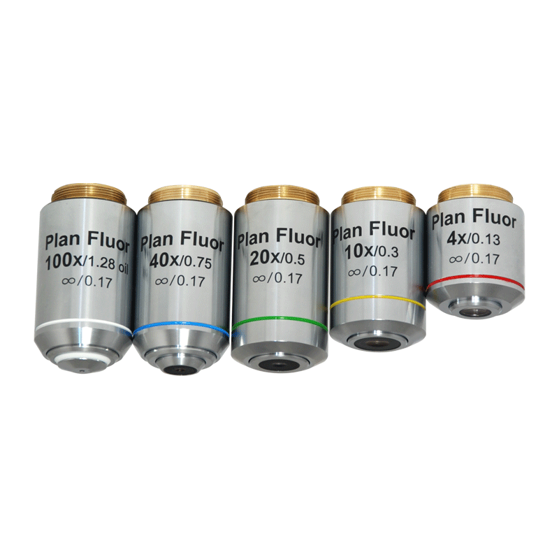 Infinity-Corrected Plan Fluor Semi-Apochromatic Microscope Objective Lens Set (Oil Spring) 4X 10X 20X 40X 100X