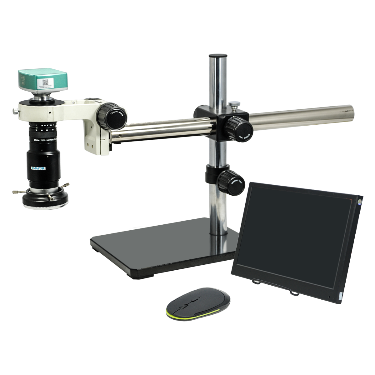 Includes video microscopes, digital microscopes, electrical and electronic products such as light sources, cameras, software, monitors, and electronic components.