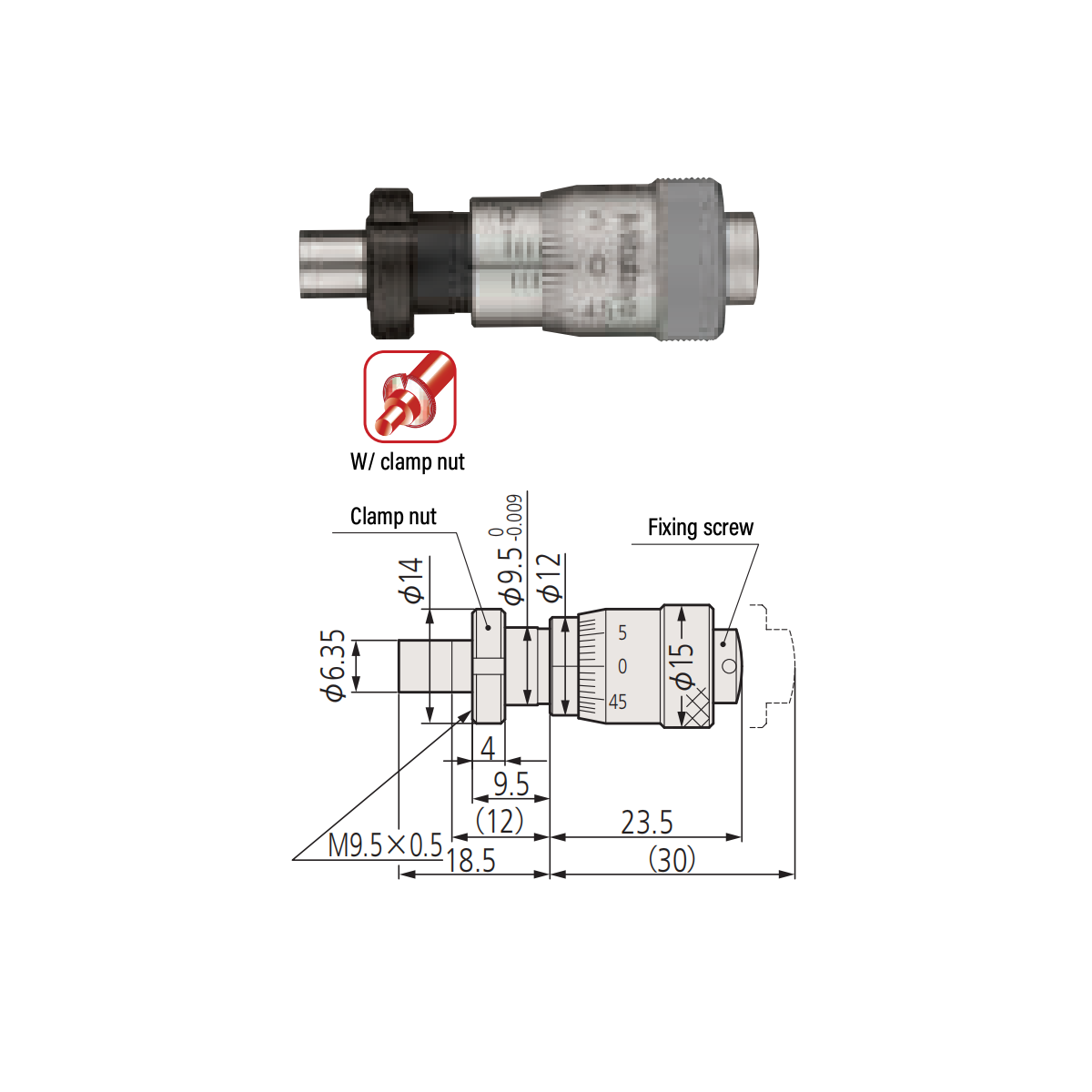 0-0.25″ Mechanical Micrometer Head Graduation 0.001″ 0.25" Flat with Clamp Nut Mechanical Micrometer Head (Thimble Diameter: Dia. 15mm) Mitutoyo-148-352-10