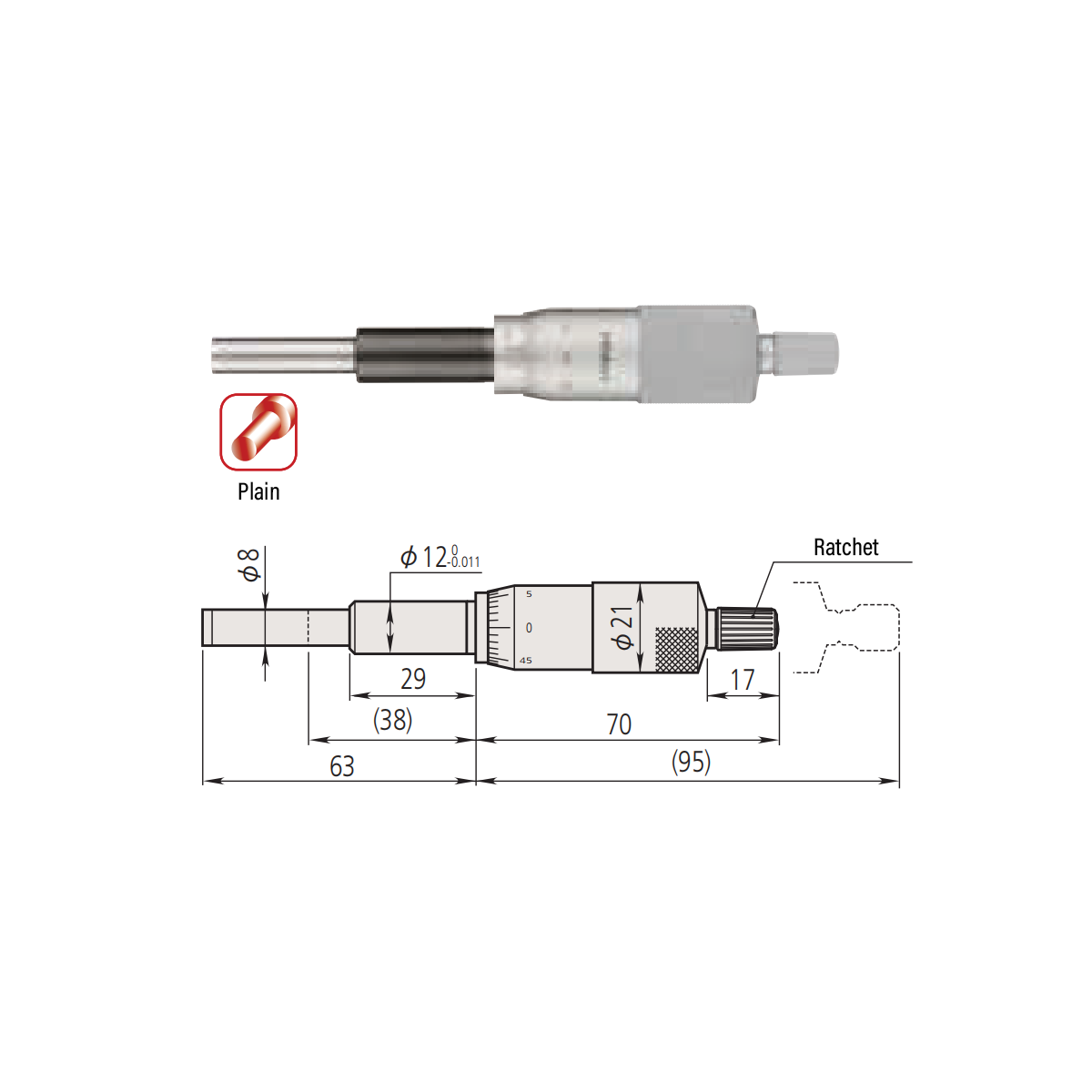 Mitutoyo-151-240 1" Flat Mechanical Micrometer Head (Thimble Diameter: Dia. 21mm, Spindle Diameter: Dia. 8mm)