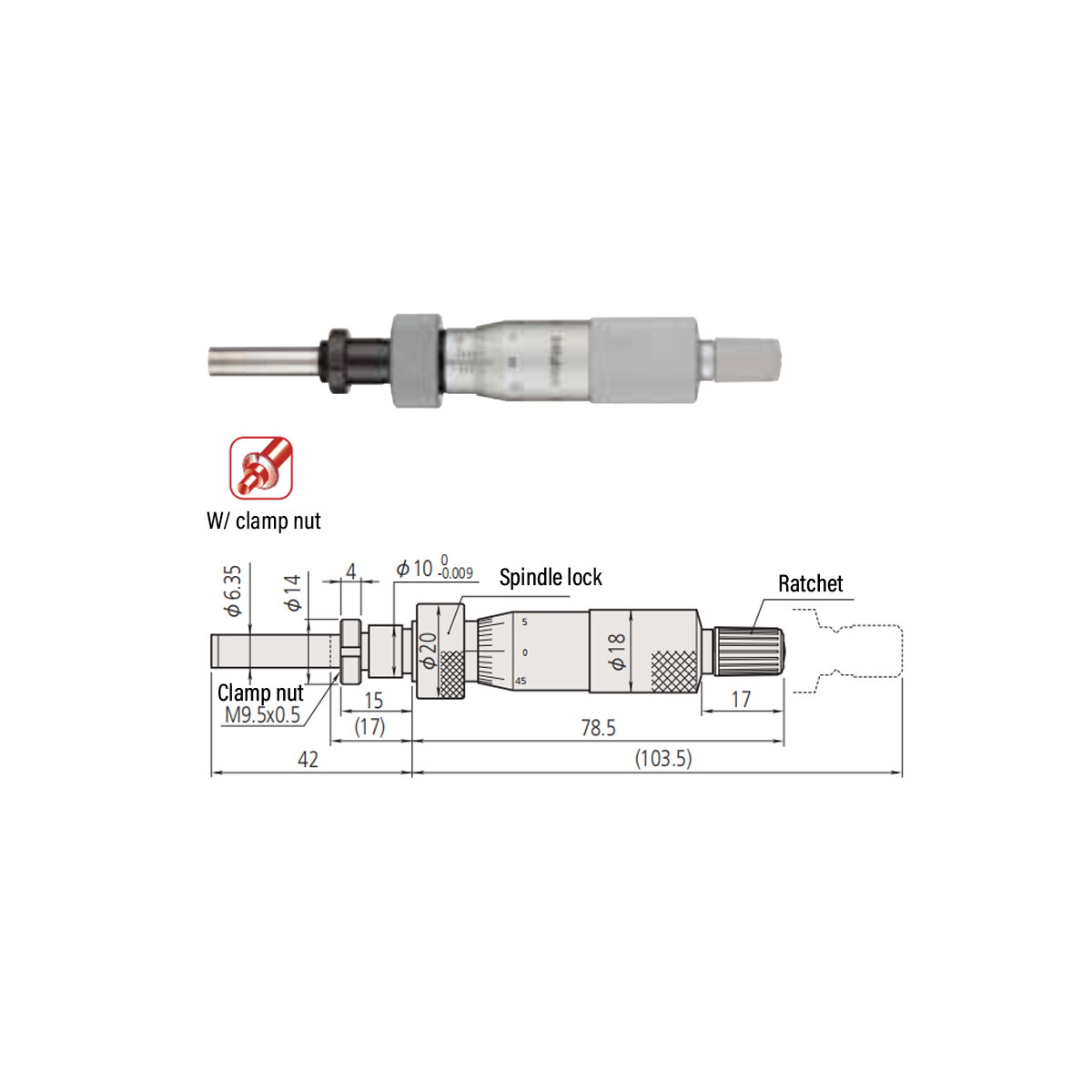 | Digital Micrometer Head Spindle Diameter | Dia. 6.35mm |