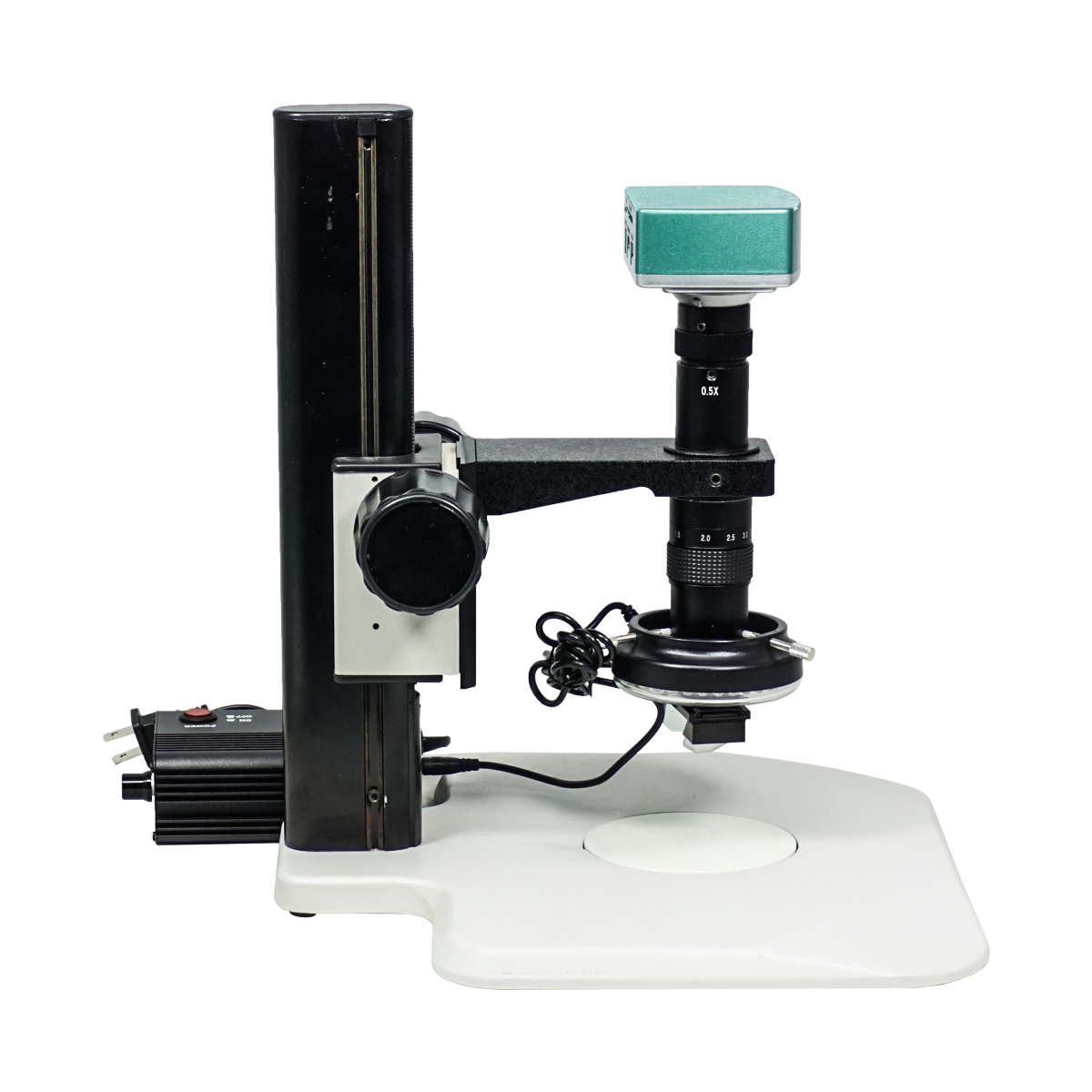 Includes video microscopes, digital microscopes, electrical and electronic products such as light sources, cameras, software, monitors, and electronic components.