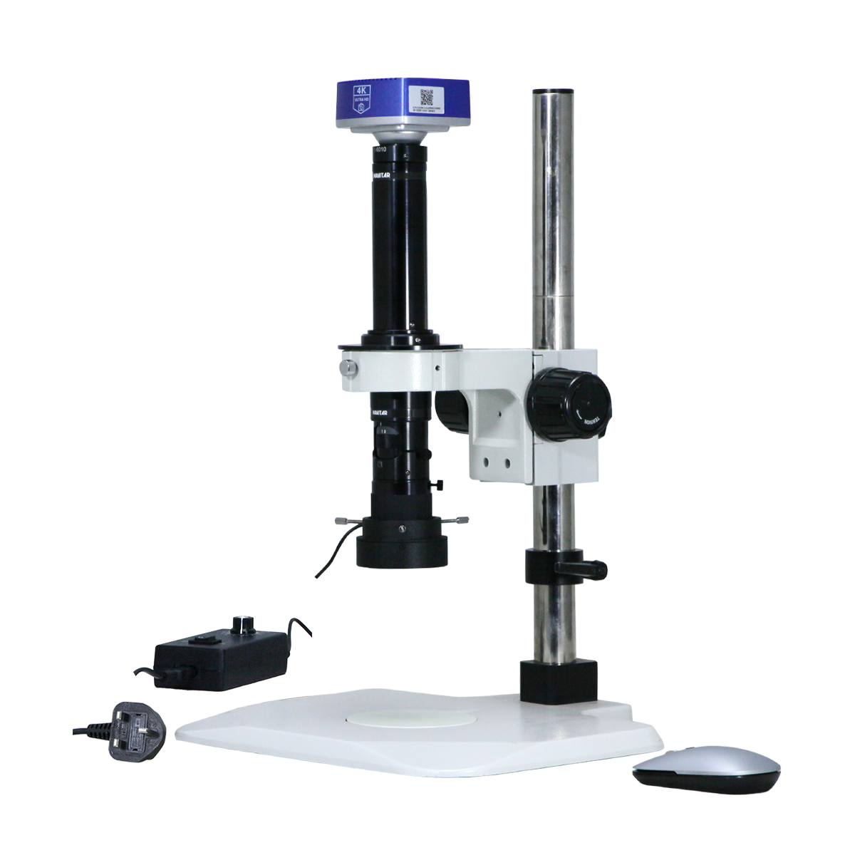 Includes video microscopes, digital microscopes, electrical and electronic products such as light sources, cameras, software, monitors, and electronic components.