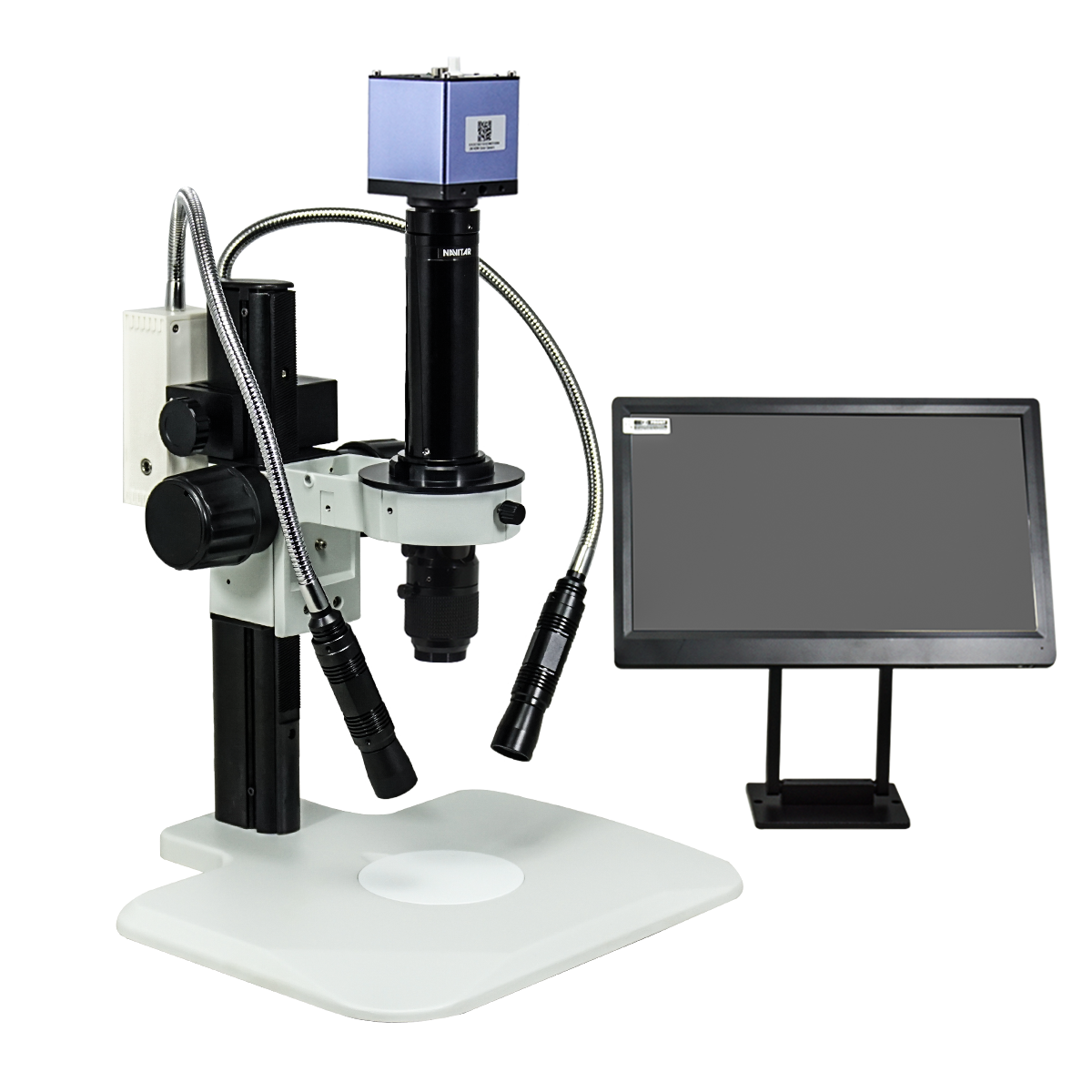 Includes video microscopes, digital microscopes, electrical and electronic products such as light sources, cameras, software, monitors, and electronic components.