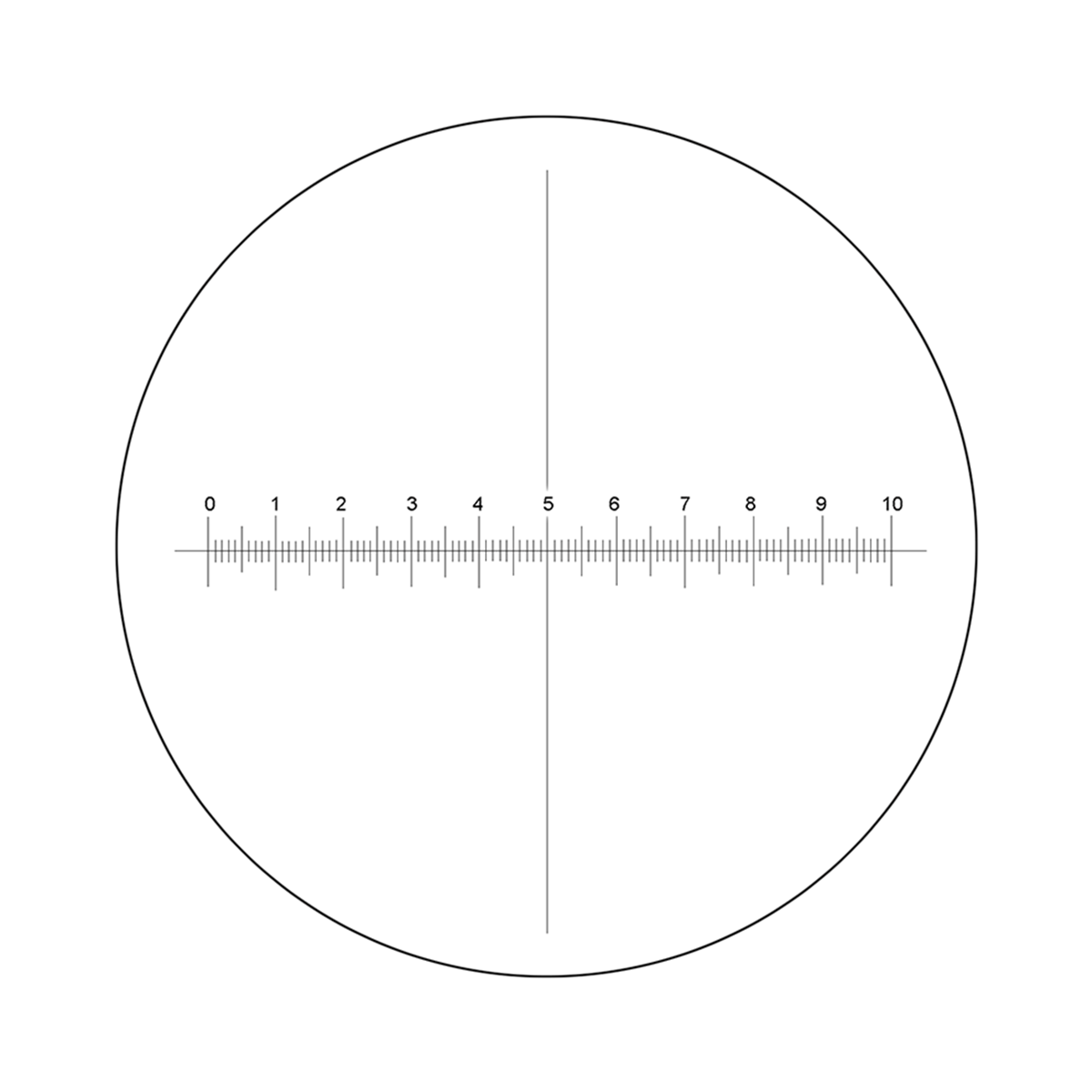 X-Axis Crosshair Scale. Reticle Dimensions: Dia. 20.4x1.5mm. 10mm/100 Div . Background Type: Positive.