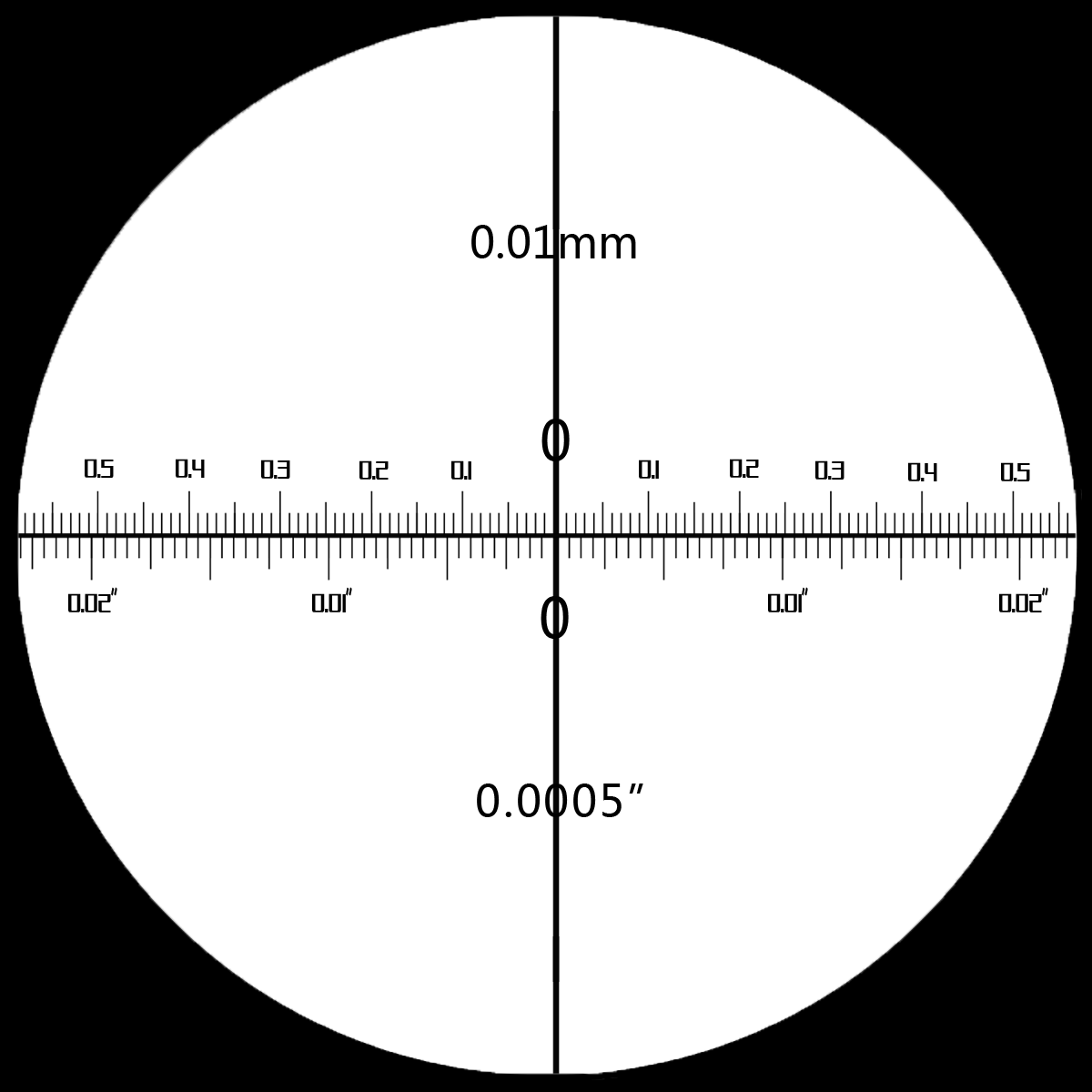 Standard Eyepiece. Eyepiece Optical Magnification: 10X. Eyepiece Size for Eye Tube: Dia. 23mm. Eyepiece Field of View: Dia. 12mm. X-Axis Crosshair Scale. Reticle Dimensions: Dia. 16x0.5mm. 10mm/1000 Div.