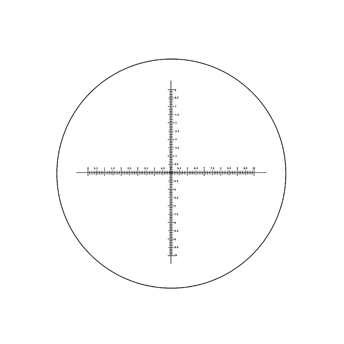 Crosshair Scale. Reticle Dimensions: Dia. 24x1.5mm. 10mm/200 Div. Background Type: Positive.