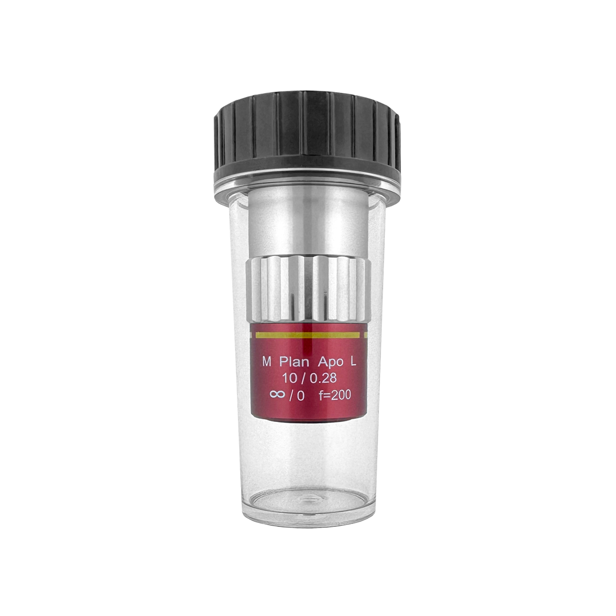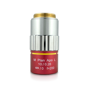 Infinite. 10X. Plan Apochromatic Objective. Objective Parfocal Distance: 95mm. Objective for Focal Length: 200mm. Objective Working Distance: 34mm. N.A. 0.28. Objective Wavelength: 400-1800nm. NIR Transmittance: 770-790nm 80% or more. Diameter of Image Focal Plane: Dia. 24mm. For LM1801 Series Microscope, Mitutoyo FS70 Microscope.