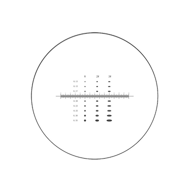 Multiple Scale. Reticle Dimensions: Dia. 26x1.5mm. 14mm/140 Div. Diameters Range: Dia. 0.13-0.35mm. Background Type: Positive.