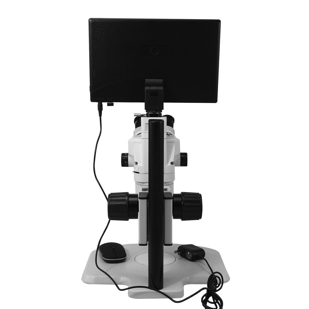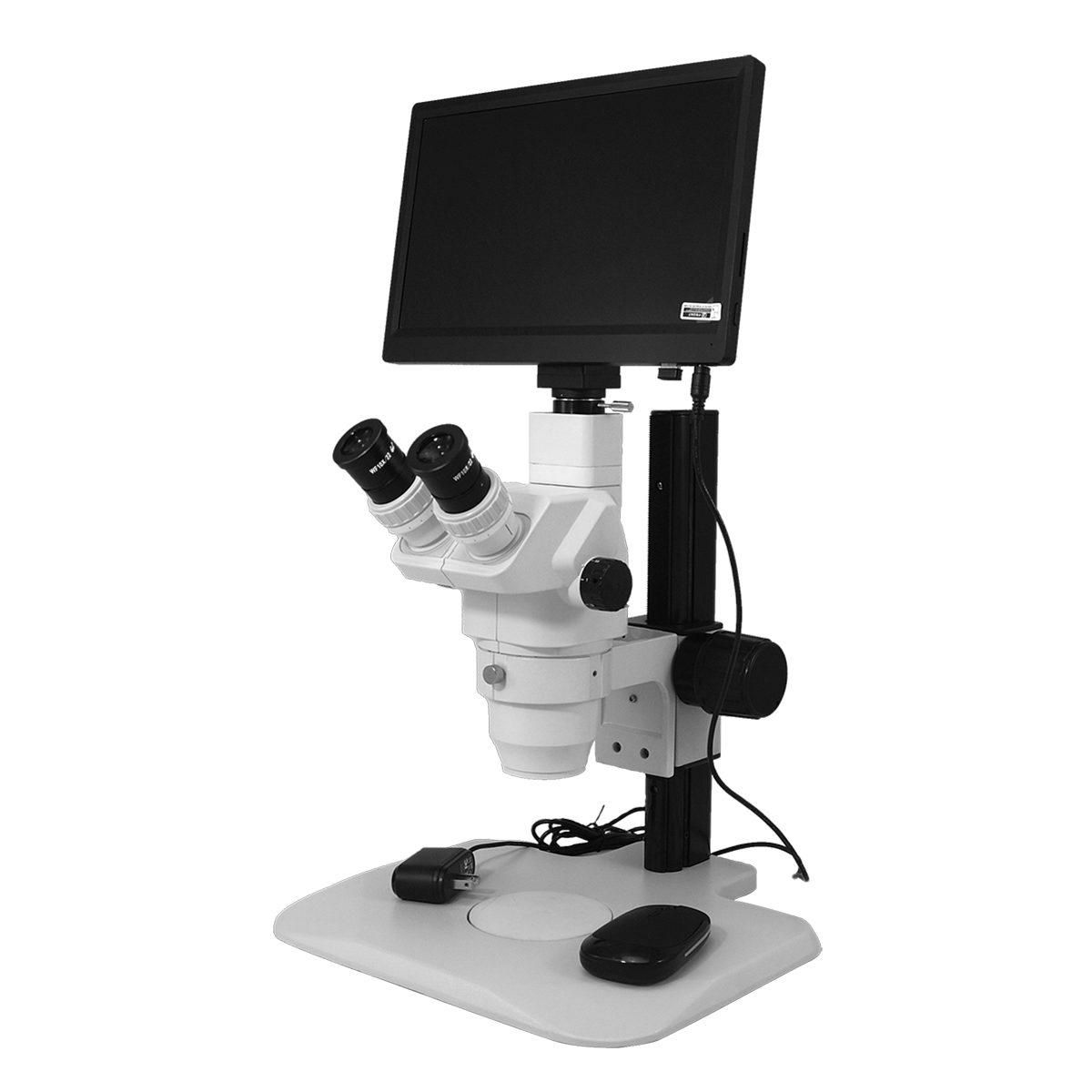 Finite. Total Magnification: 15.7-105.3X. 10X High Eyepoint Eyepiece. 1X Built-in Objective. Standard Coupler: 0.5X. Zoom Ratio: 1:6.7. Trinocular. Body Mounting Size for Stand: Dia. 76mm. Eye Tube Angle: 45°. Eyepiece Field of View: Dia. 22mm. Track Stand. CMOS. 2.0 Megapixels. Windows XP/7/8/10/11. Screen Size: 11.6in. Input Voltage: DC 12V.