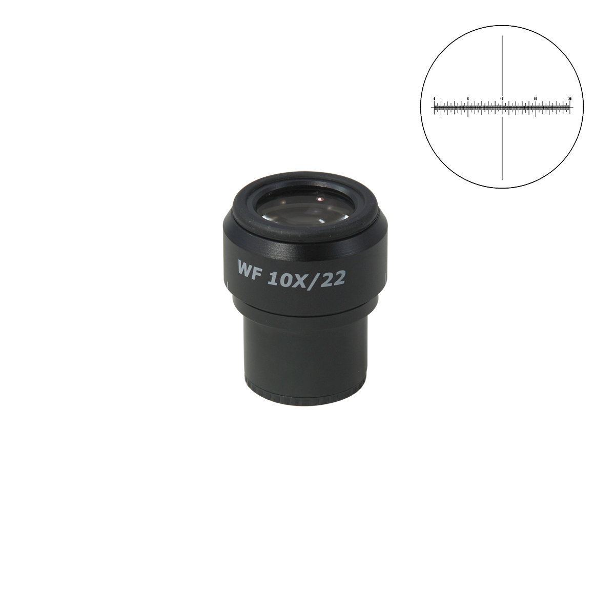 Reticle Adjustable Eyepiece. Eyepiece Optical Magnification: 10X. Eyepiece Size for Eye Tube: Dia. 30mm. Eyepiece Field of View: Dia. 22mm. Eyepiece Diopter Correction: ±5°. X-Axis Crosshair Scale. Reticle Dimensions: Dia. 27x1.5mm. 20mm/200 Div . For SZ1701, Nkon SMZ645 Series, Olympus SZ61 Stereo Microscopes.