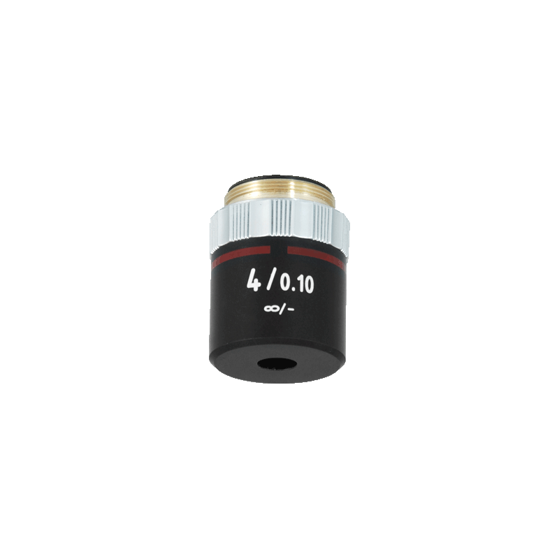 Infinite. 4X. Semi-Plan Achromatic Objective. Objective Parfocal Distance: 45mm. Objective Working Distance: 16.8mm. N.A. 0.10. For BM1302 Series Microscope.