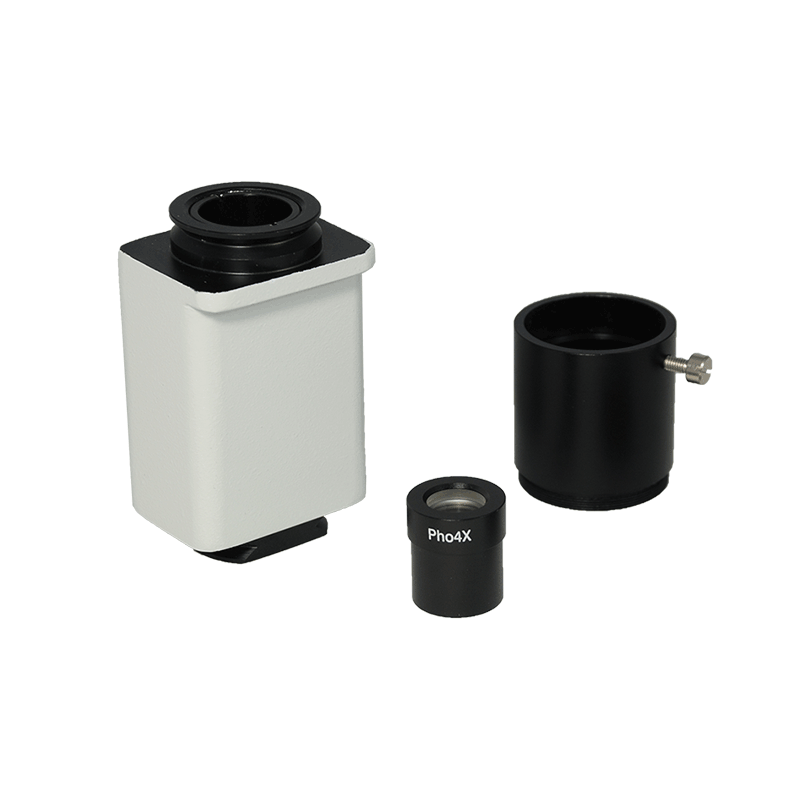 All DSLR Camera Compatible. Stereo Compatible. Camera Adapter Magnification: 4X. Dia. 38mm. For SZ05011131, SZ05011132, SZ05011133, SZ05011151 Trinocular Zoom Body.