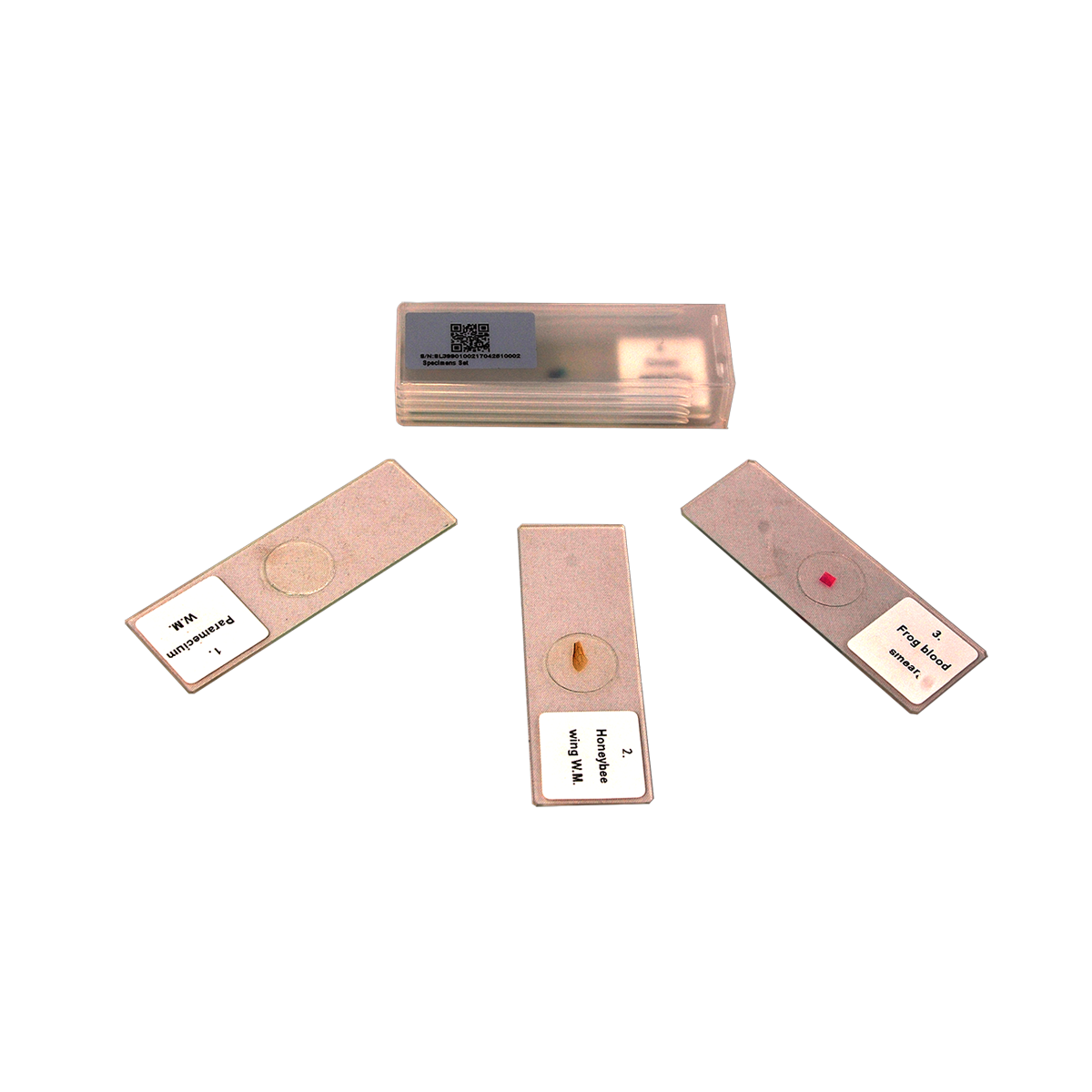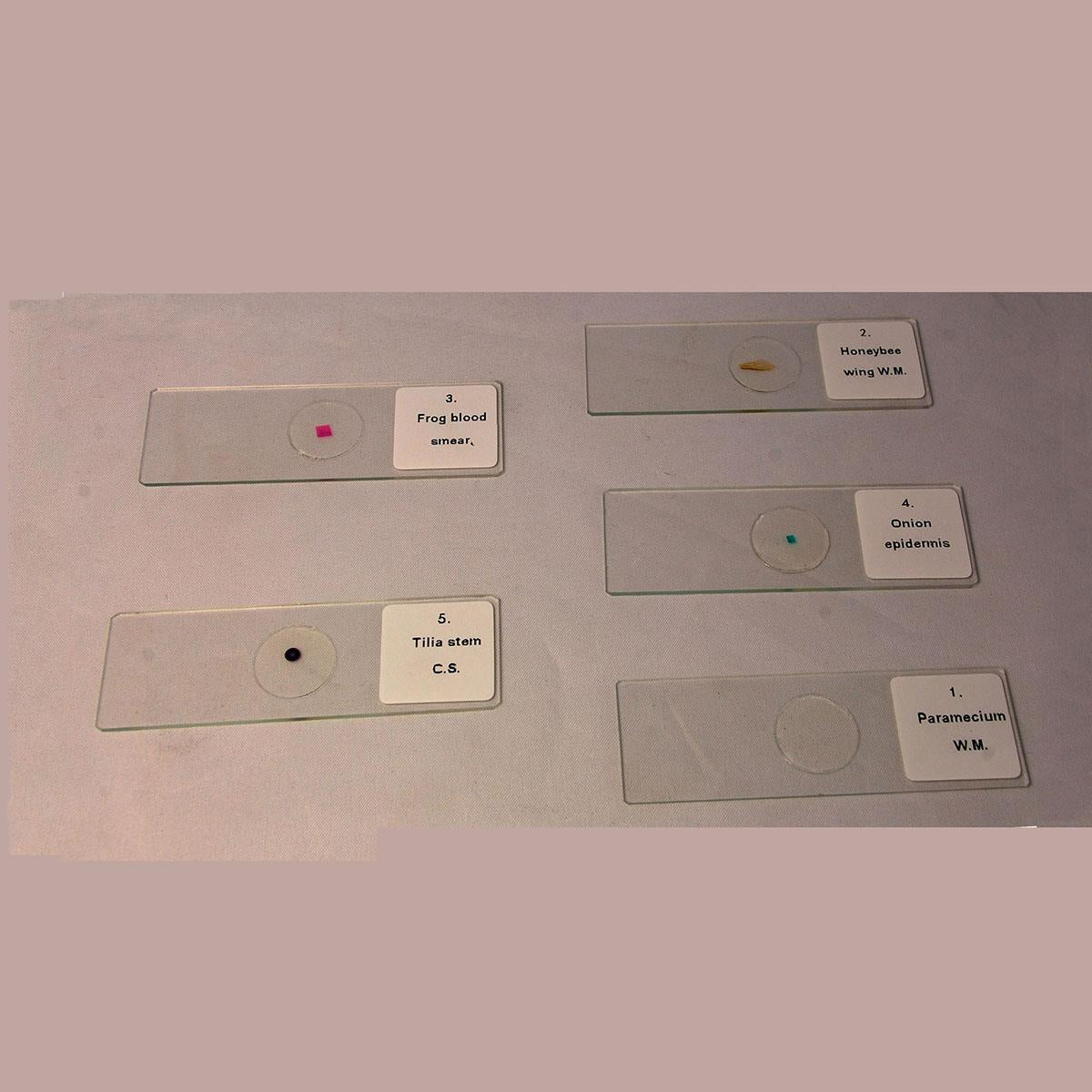 - A great starter set of 5 biology slides, including plant and animal specimen.
