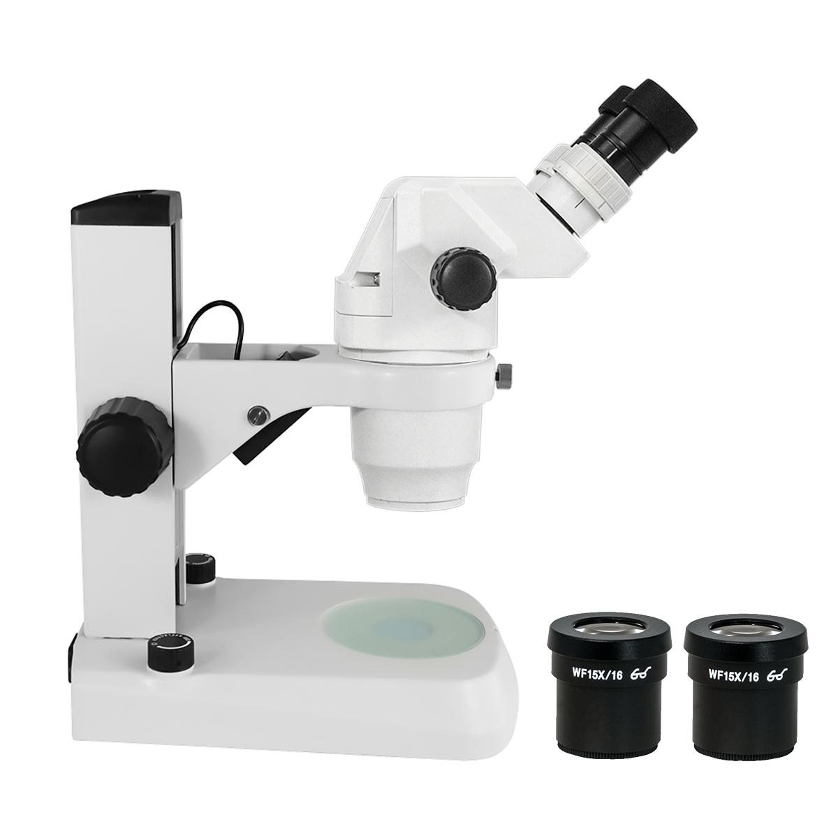 Finite. Total Magnification: 6.7-67.5X. 10X 15X High Eyepoint Eyepiece. 1X Built-in Objective. Zoom Ratio: 1:6.7. Binocular. Body Mounting Size for Stand: Dia. 76mm. Eye Tube Angle: 45°. Eyepiece Field of View: Dia. 16mm. Eyepiece Field of View: Dia. 22mm. Track Stand. Illumination Type: LED Dual Illuminated Light . Top Illumination: Oblique Top Light. Input Voltage: AC 100-240V 50/60Hz.